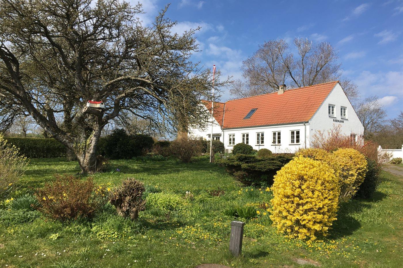 I udkanten af Tejn ligger denne ejendom, som er indrettet med flere lejligheder, hver med sin egen haveafdeling. Her er der virkelig meget plads, da der også er mulighed for at benytte de store fællesarealer med flot natur.
