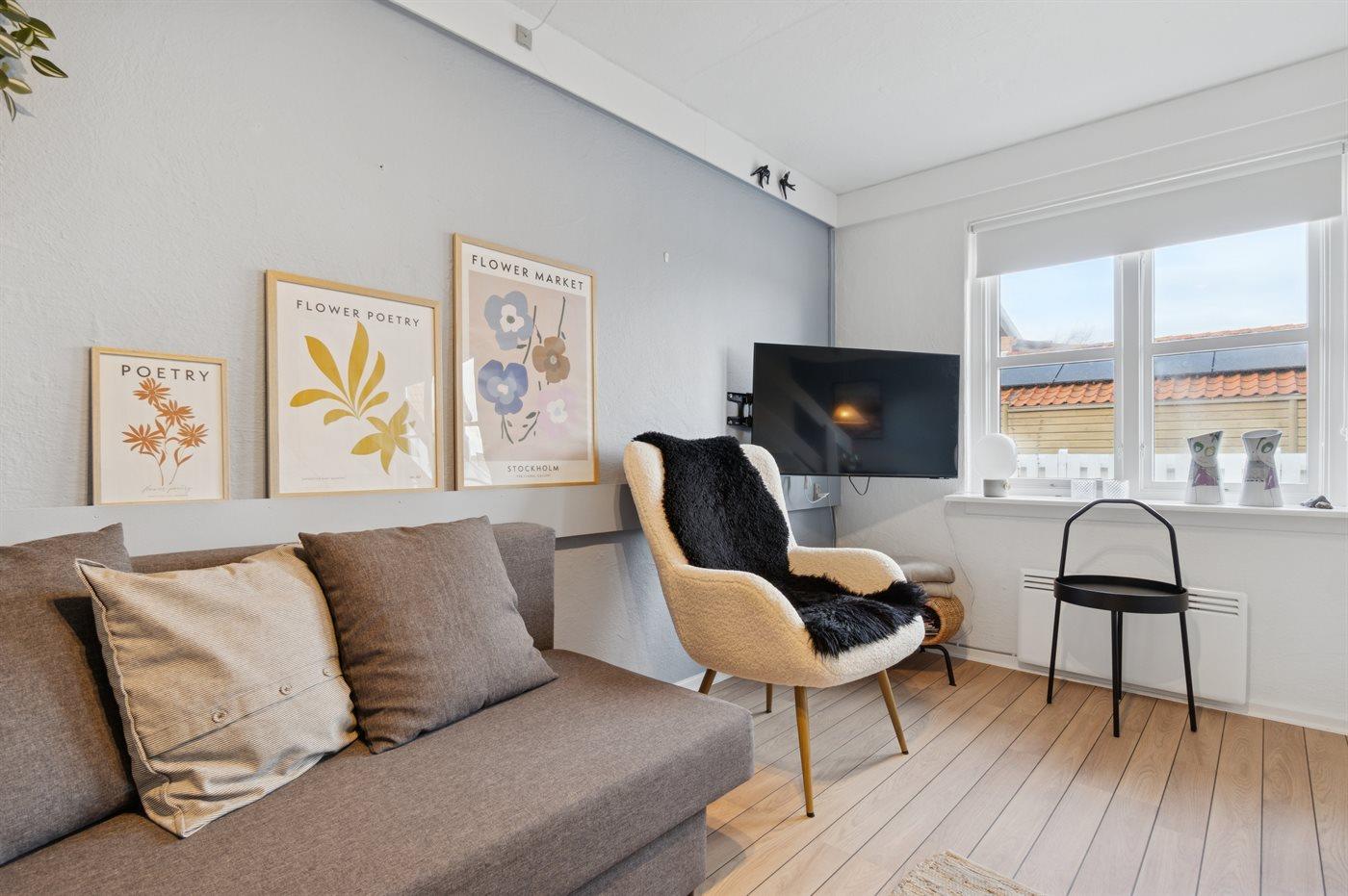 Velholdt ferielejlighed i Allinge med adgang til pool, legeplads og natur tæt på stranden og byliv.