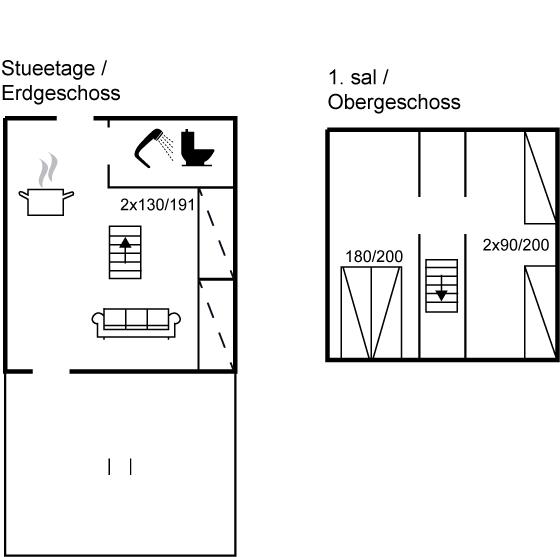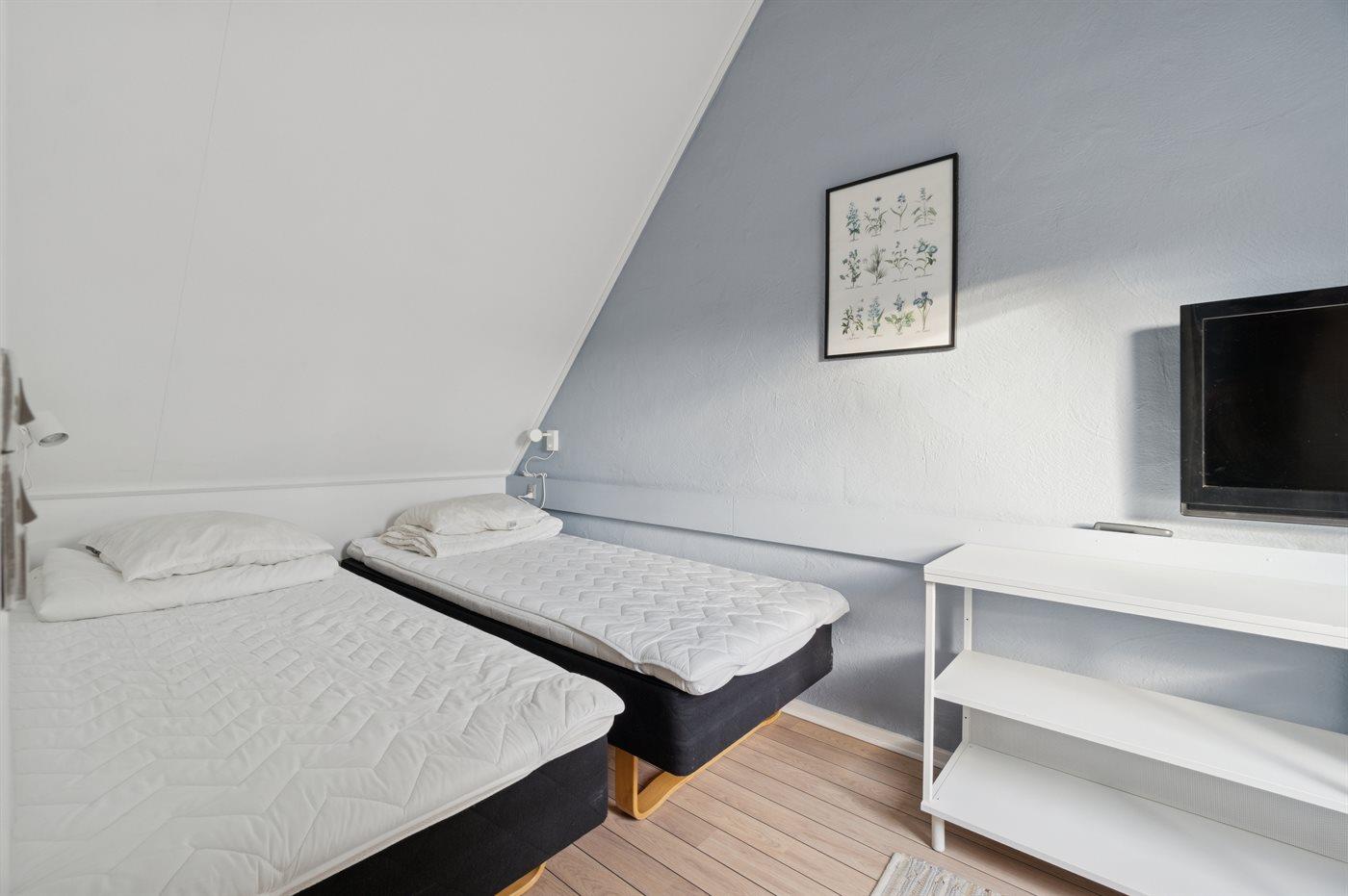 Der er i alt 2 soveværelser. Sovepladserne fordeler sig på: 2 sovepladser i dobbeltseng. 2 sovepladser i enkeltsenge. 2 sovepladser i sovesofa (dobbelt).