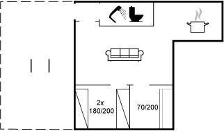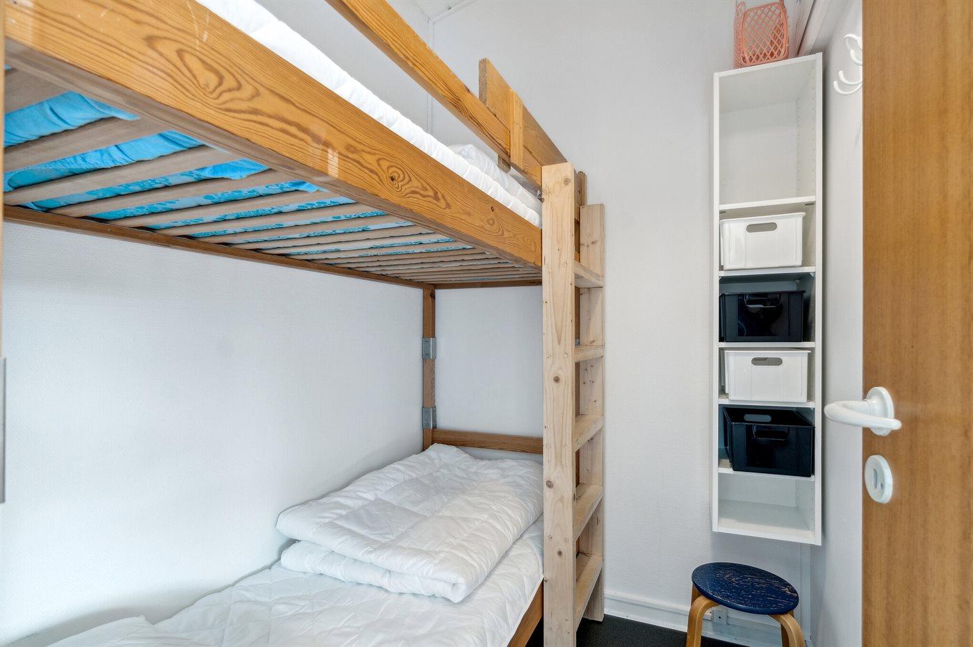 Der er i alt 2 soveværelser. Sovepladserne fordeler sig på: 2 sovepladser i enkeltsenge. 2 sovepladser i køjeseng.