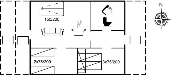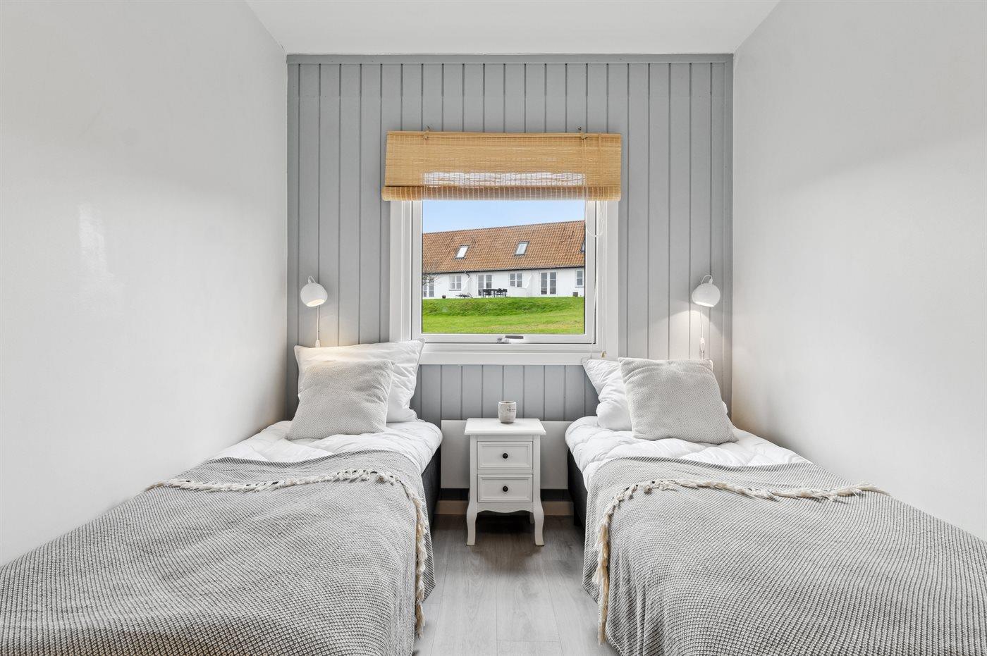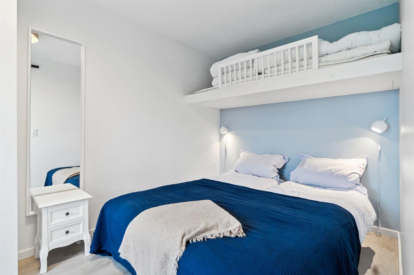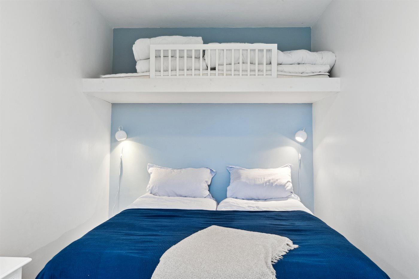 Der er i alt 2 soveværelser. Sovepladserne fordeler sig på: 4 sovepladser i dobbeltsenge.1 soveplads i køjeseng. 2 sovepladser i sovesofa (enkelt). 2 af disse sovepladser befinder sig i stuen.