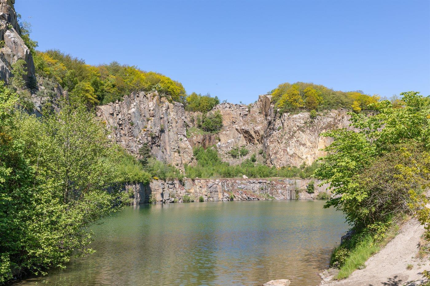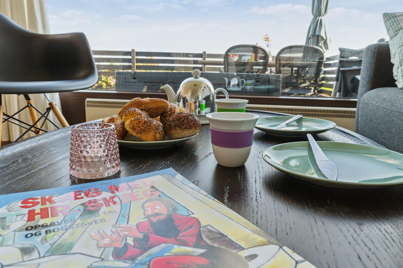 Foran lejligheden er der en terrasse, hvor formiddagskaffen kan nydes i fred og ro med et lille kig ned på klippetoppene, der stikker op.