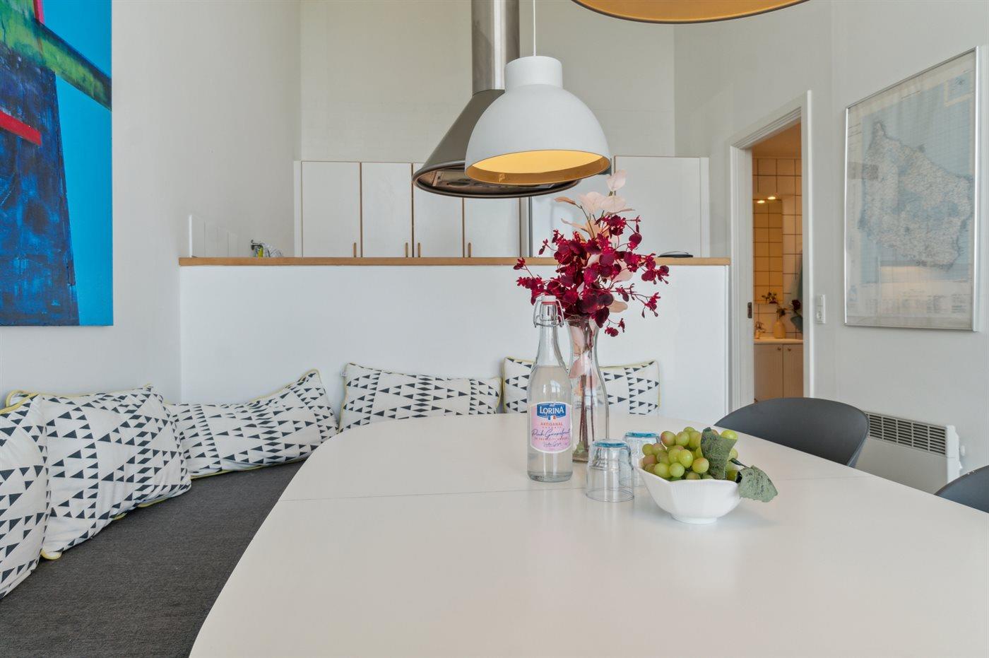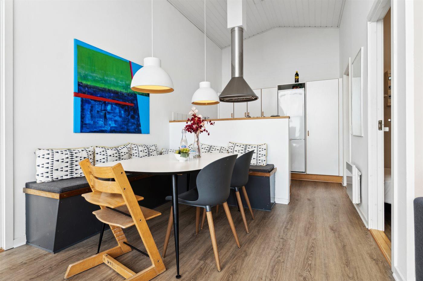 Køkkenet er udstyret med 1 køleskab. Der er 4 keramiske kogeplader, varmluftovn samt opvaskemaskine.