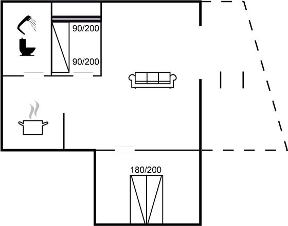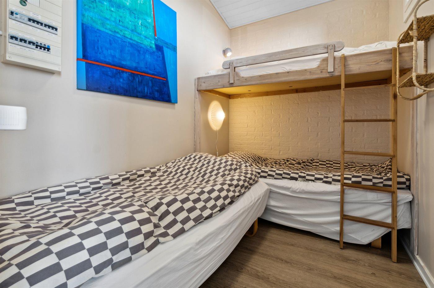 Der er i alt 2 soveværelser. Sovepladserne fordeler sig på: 2 sovepladser i dobbeltseng. 1 soveplads i enkeltseng. 2 sovepladser i køjeseng. 2 sovepladser i sovesofa (dobbelt). 2 af disse sovepladser befinder sig i stuen.