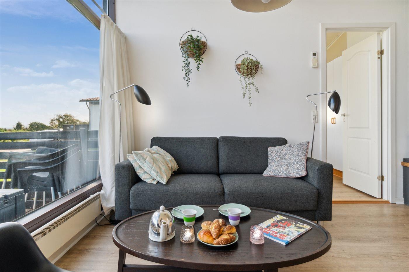Lejligheden ligger i det lille hyggelige feriecenter Madseløkke, hvor der foruden udendørs fællespool også er boldbane, legetårn, sandkasse m.m., så både mindre børn og de lidt større kan få oplevelser sammen med andre under ferien. Lejligheden er pænt vedligeholdt og indrettet med en større stue, hvor de store panoramavinduer giver et flot lys og udsigt til havets skiftende nuancer af blå. Møbleringen er i god kvalitet og køkkenafdelingen veludstyret med, hvad man har brug for, når feriemiddagen skal forberedes.