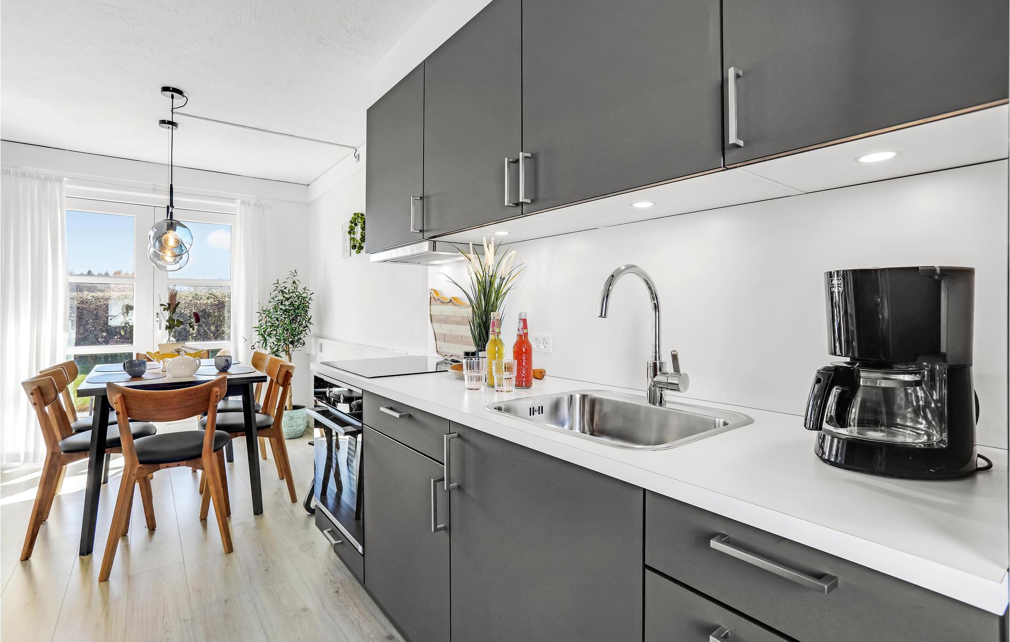 Denne fine ferielejlighed giver jer en herlig base til jeres ferie på Bornholm. Her kan I se frem til moderne udstyr og smarte indretningsdetaljer hele vejen rundt. Udendørs er der adgang til en lang række faciliteter for børn og voksne, heriblandt legeplads og en pool, så I får rig mulighed for at bruge tiden udendørs.