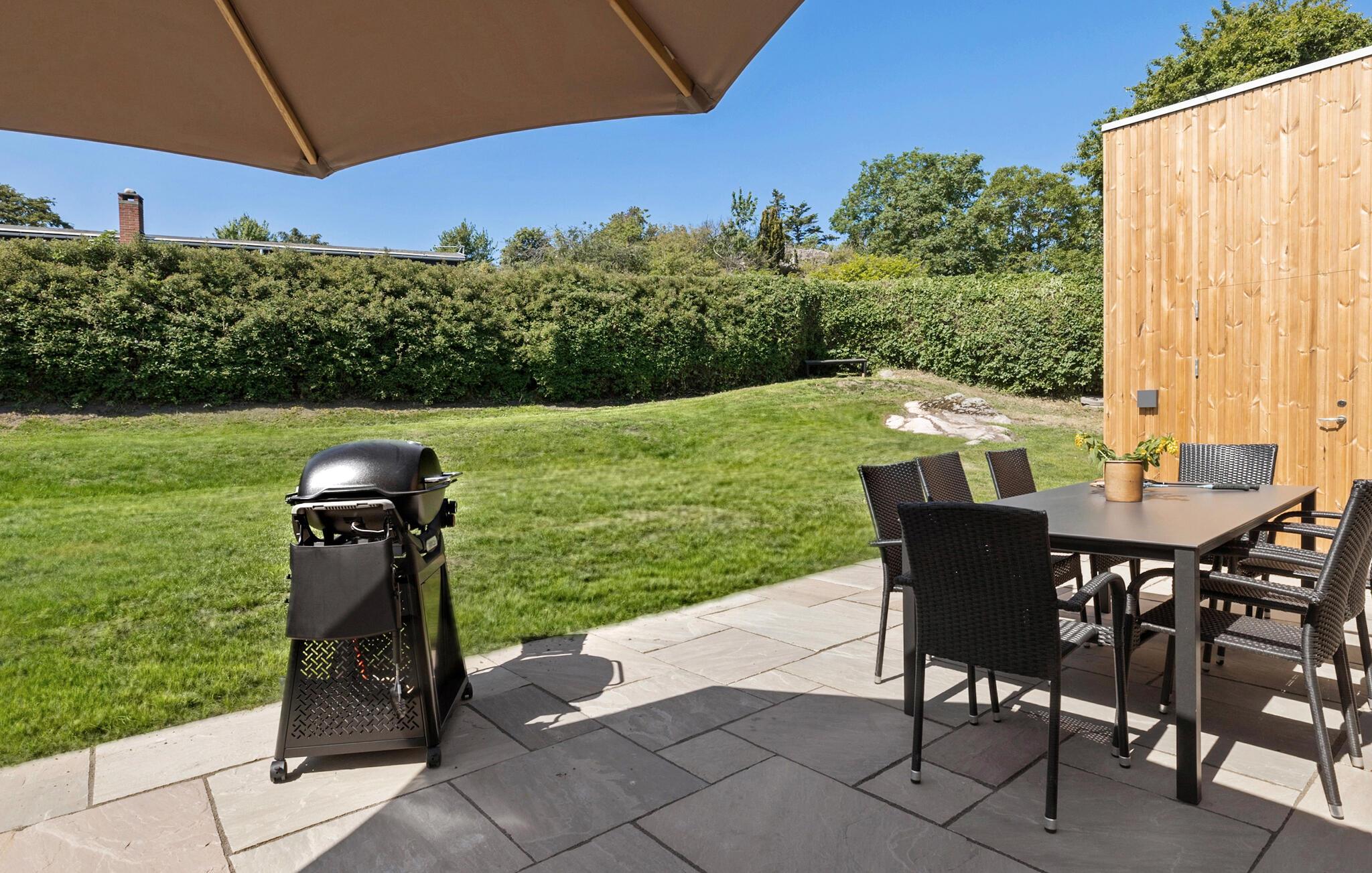 Nyd freden og roen på en af ??terrasserne omkring huset. Spis morgenmad udenfor eller afslut dagen med et glas vin i aftensolen. Haven smelter harmonisk sammen med omgivelserne og tilbyder masser af plads til afslappende timer udendørs.