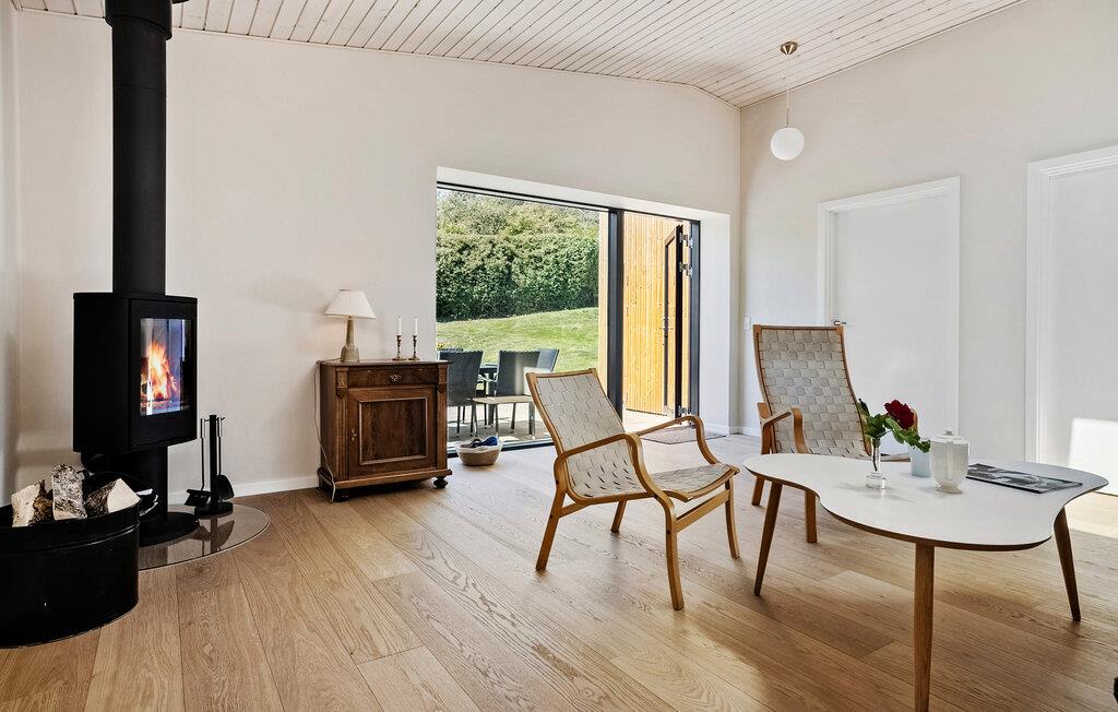 Tilbring en afslappende ferie i dette arkitekttegnede feriehus med havudsigt på Bornholm. Huset ligger tæt på kysten og tilbyder en vellykket kombination af enkel skandinavisk elegance og en hjemlig atmosfære. Interiøret er åbent og moderne. Slap af i sofaen foran brændeovnen eller planlæg jeres dag i det hyggelige siddeområde med udsigt over det grønne. Det stilfulde køkken-alrum smelter elegant sammen med rummet og lægger op til at nyde hyggelige madlavningsaftener. De store vinduer bader huset i naturligt lys og har udsigt over havet.
