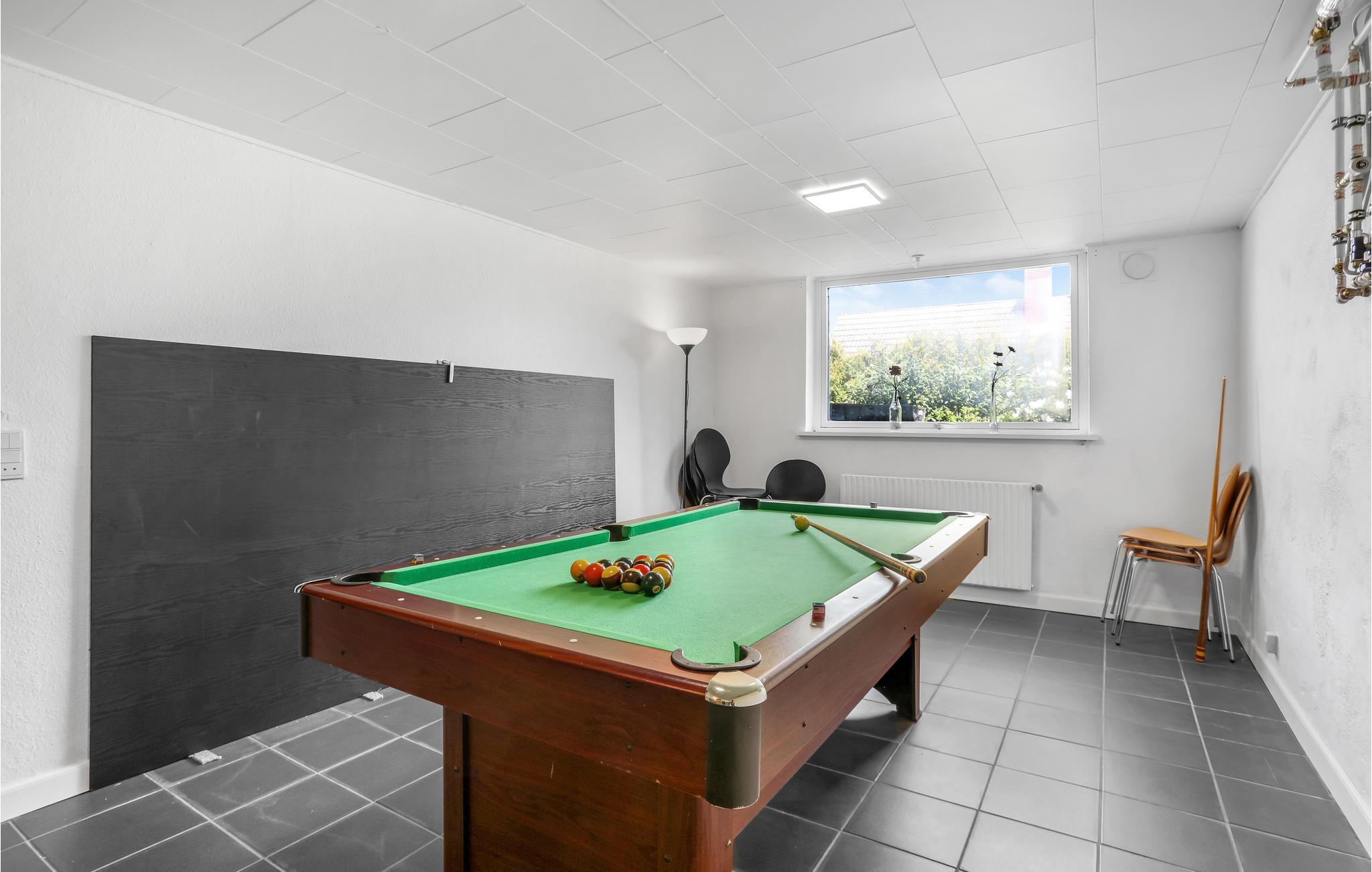 Det fint indrettede hus er i tre plan og byder på to stuer med henholdsvis biopejs og brændeovn. Der er i alt fem soveværelser, så I har god plads at fordele jer på. I har døre til flere skønne terrasser, og uderammerne giver jer også herlige faciliteter som gasgrill, udespa og havemøbler. I den hyggelige have kan I slappe af og lytte til fuglesang, og så er der desuden et aktivitetsrum, hvor I kan dyste over et spil bordfodbold eller bordtennis.