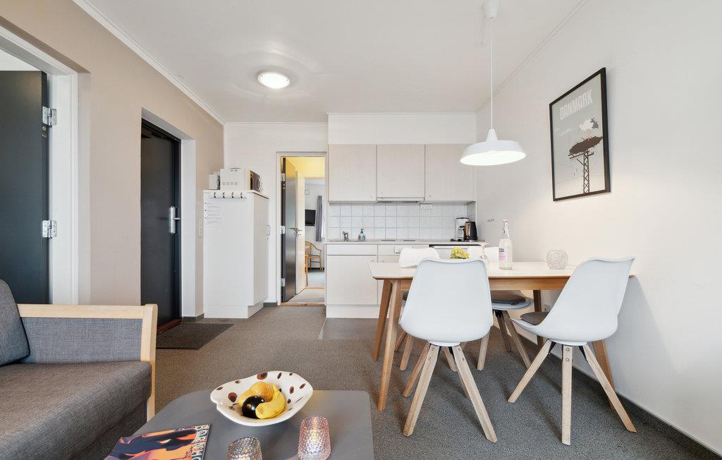 Lejlighedens hjerte er den attraktivt indrettede opholdsstue med dobbelt sovesofa og TV, hvor I kommer til at tilbringe mange hyggestunder. I det åbne køkken med spiseplads kan I tilberede dejlige feriemåltider. Der er behagelig gulvvarme på badeværelset. Til lejligheden hører en overdækket terrasse med en storslået panoramaudsigt over havet - det perfekte sted at nyde morgenkaffen eller et godt glas vin om aftenen. Rejser I med flere par eller vennefamilier, kan I booke ekstra ferielejligheder i det smukke feriekompleks, afhængig af tilgængelighed.