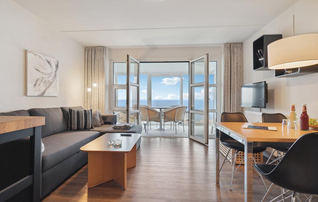 Velkommet til denne attraktive ferielejlighed, der er velegnet til to par, der ønsker at holde ferie sammen på solskinsøen. Lejlighedens hjerte er opholdsstuen med TV og en dobbelt sovesofa, hvor I kommer til at tilbringe mange hyggelige stunder. I åben forbindelse med opholdsstuen ligger køkkenet med kombiovn og spiseplads, hvor I kan tilberede lækre feriemåltider. Soveværelset har også et TV, så I kan se film under dynen. Begge badeværelser har bruser, WC og behagelig gulvvarme. Til lejligheden hører en dejlig havestue med en fantastisk panoramaudsigt over havet og en sydvestvendt terrasse med havemøbler - begge fantastiske steder at nyde morgenkaffen og et godt glas vin om aftenen. Rejser I med flere par eller vennefamilier, kan I booke ekstra ferielejligheder i det smukke feriekompleks, afhængig af tilgængelighed.