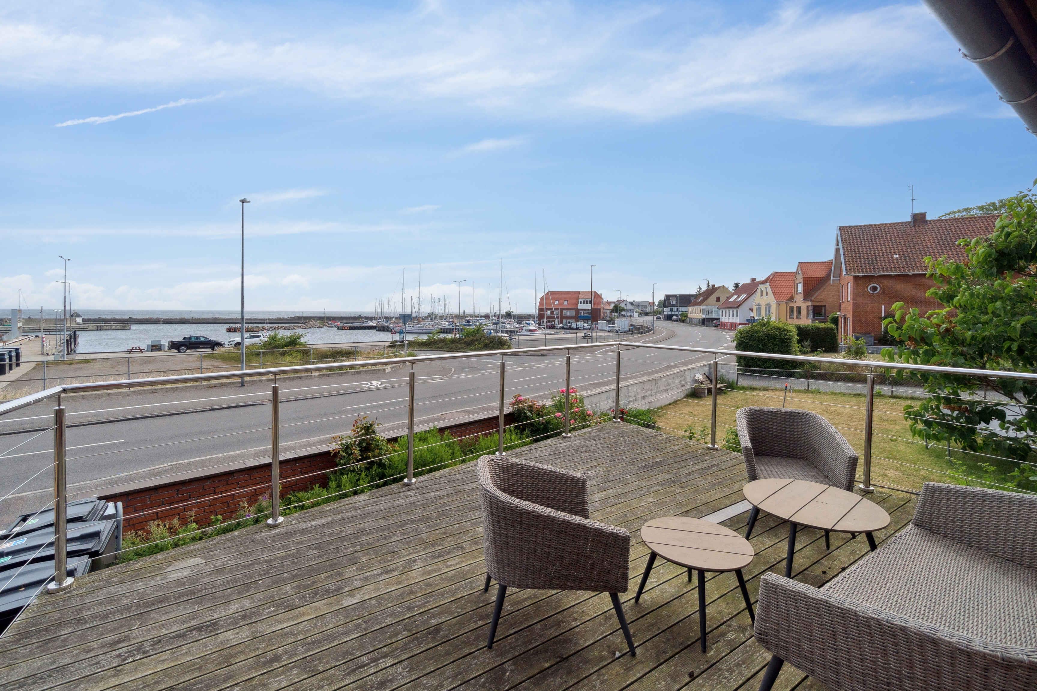 Hyggeligt byhus i Tejn med havudsigt, stor terrasse, balkon og tæt på havn, strand og natur.
