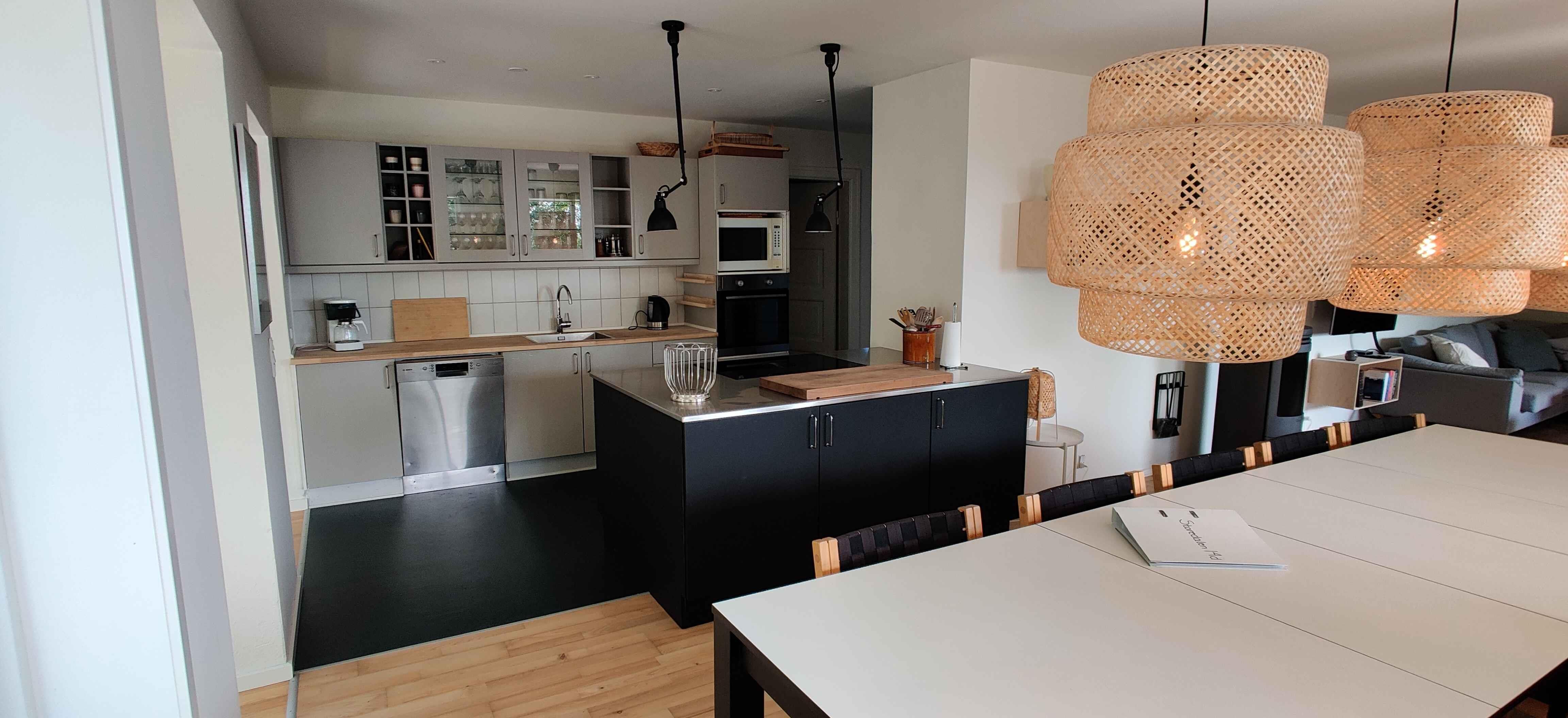 Stort sommerhus beliggende i Sandkås med enestående udsigt over havet. Sommerhuset er dejligt stort med 7 rum fordelt på 2 plan, så der er plads til den helt store familie her. Huset råder over 6 store soveværelser, som fleksibelt kan indrettes med dobbelt eller enkelt senge, i alt plads til 12 personer. Hertil har huset 2 badeværelser samt separat toilet og et lækkert funktionelt køkken med køkkenø og spiseplads til hele familien. Fra stueetagen er der udgang til den skønneste overdækkede træterrasse med flere hyggelige kroge med komfortable havemøbler. Herfra kan I opleve den flotteste panoramaudsigt over havet. Til de køligere måneder kan I tænde op i husets brændeovn og nyde varmen fra denne med en god bog og en kop varm chokolade. Kun 350m fra huset finder I Sandkås's smukke og børnevenlige sandstrand med badebro, kiosk og et bassin til de små. Her er der blevet lagt store sten rundt som indhegning med det formål at bryde bølgen. Dette gør den inderste del af stranden meget børnevenlig. (obs: badebro og kiosk er kun sat op / er kun åben i sommermånederne). Fra store Sandkås kan I også gå langs kyststien til Allinge. En meget smuk tur, der klart kan anbefales. Turen ender i Allinge, lige ved Næs strand. Kun 2 km væk er der mulighed for indkøb. Der er heller ikke langt rundt til mange af Bornholms smukke seværdigheder såsom Hammerhus (7 km), Hammerknuden (6,4 km) og Helligdomsklipperne (7,8 km). Boligen har to (små) private parkeringspladser med direkte indkørsel fra Storedalen. OBS: Sommerhuset er et rækkehus, og derfor er der nabo på den ene side. Obs, udlejes ikke til erhversmæssigt brug.