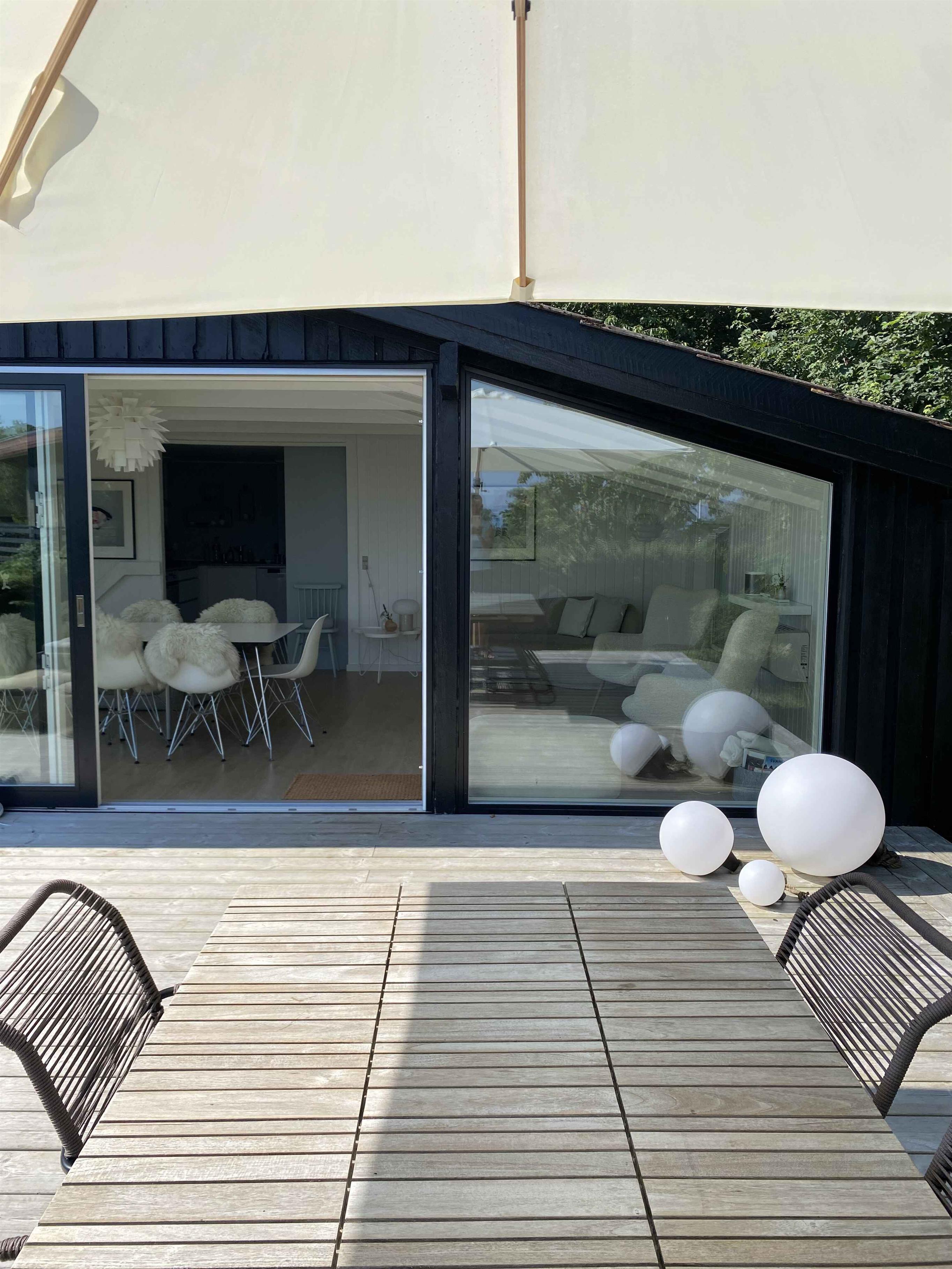Velkommen til vores skønne sommerhus i Allinge, beliggende kun 125 meter fra dejlige Næs strand og med udsigt til vandet. Vi er 3. generationsejere af sommerhuset og har i 2022 fået det moderniseret og renoveret med materialer og møbler af høj kvalitet, så det står skarpt i forhold til at danne rammen for det dejligste ferieophold på Bornholm for både jer og vores egen familie. Især vil vi fremhæve de 2 dejlige opholdstuer i forskudt plan, hvor der kan slappes af i en af sofaerne eller omkring bordet med spil, hygge og god mad. Herfra er der udgang til en stor ny terrasse møbleret med bord og stole, parasol og 2 liggestole med hynder. Køkkenet er stort og veludstyret og har udover alm. kaffemaskine også en nespressomaskine. I stuen er der SONOS højtaler og fladskærms tv med chromecast. Der er gratis WiFi i huset. Der er brændeovn og luft/luft varmepumpe i stuerne og elradiatorer i øvrige rum. Huset råder over 3 gode soveværelser med hhv. 4 enkeltsenge og 1 dobbeltseng. I alt plads til 6 personer. I området omkring sommerhuset finder I alt, hvad I behøver for en god ferie. Personligt elsker vi at gå de 500 m. til det nærmeste røgeri og købe lækker fisk med hjem til frokostbordet, eller at tage et picnickurv ned på klipperne og nyde aftensolen og den fuldstændig fantastiske udsigt over hav og klipper. Man skal heller ikke snyde sig for den flotteste gåtur på kanten af havet fra Næs til Sandkås. Huset ligger på lukket vej uden støj fra trafik. Glæd jer til en skøn ferie i dette dejlige sommerhus, hvor I kan nyde den smukke natur og have det skønt sammen. Vi glæder os til at byde jer velkommen! Obs, udlejes ikke til erhversmæssigt brug.