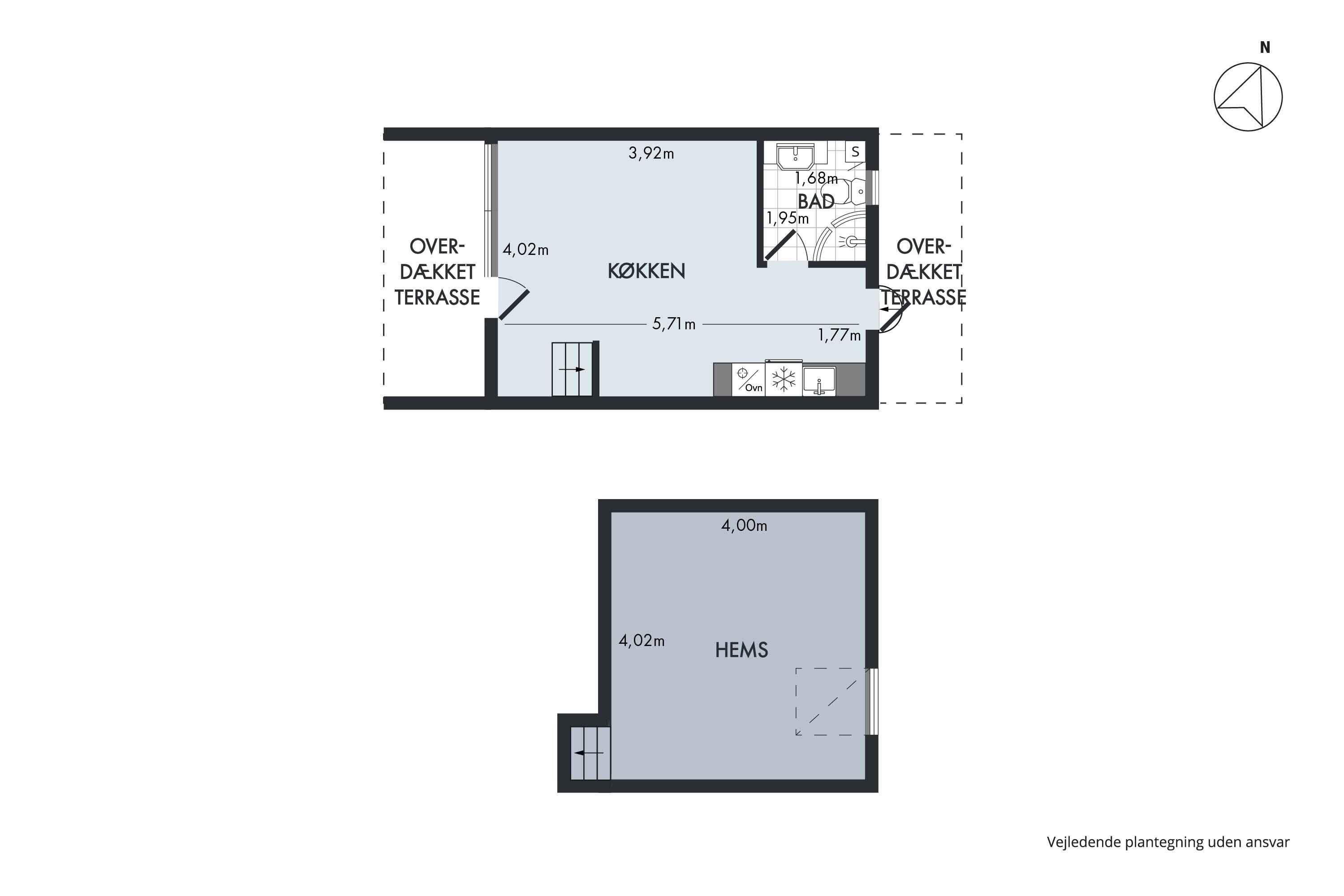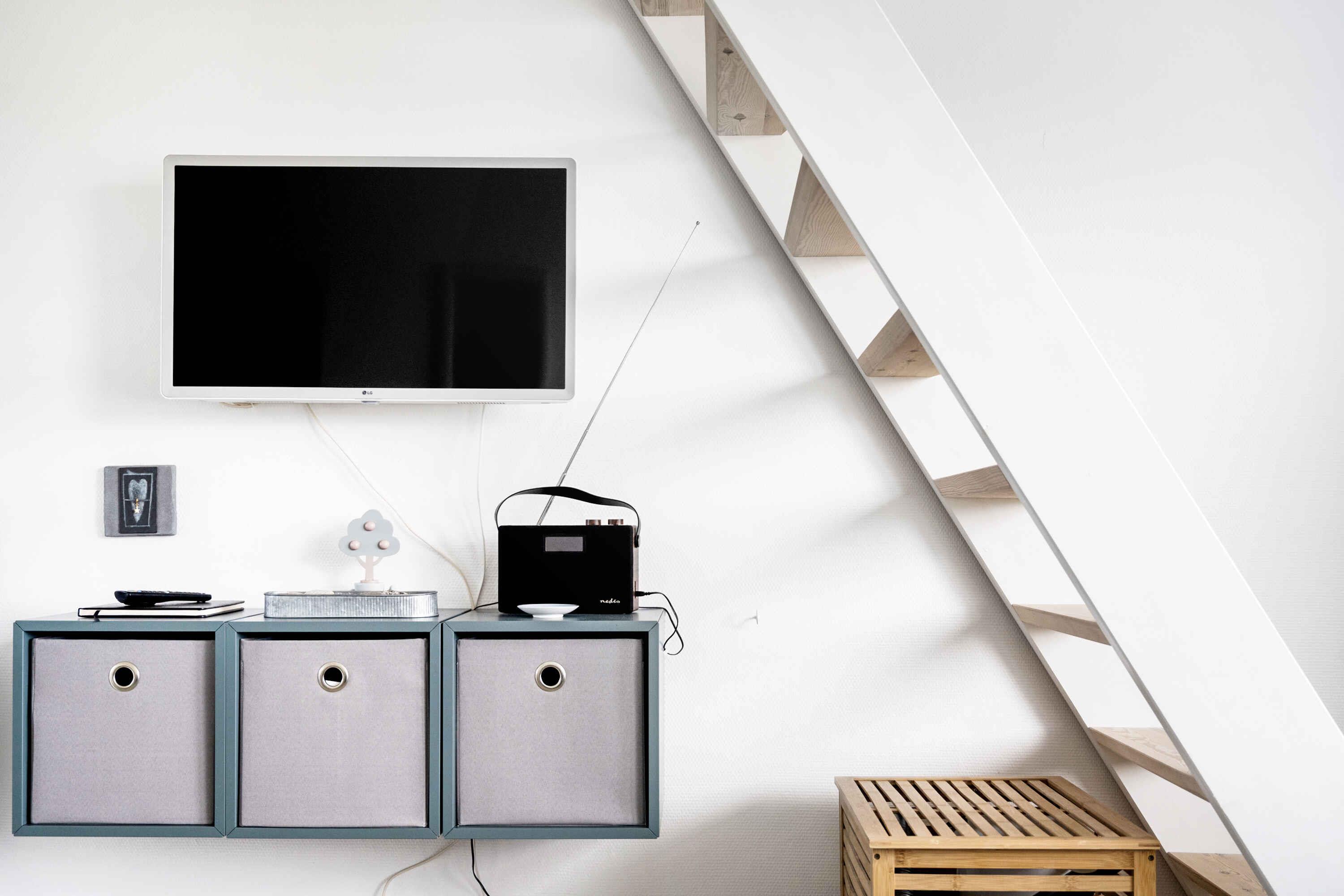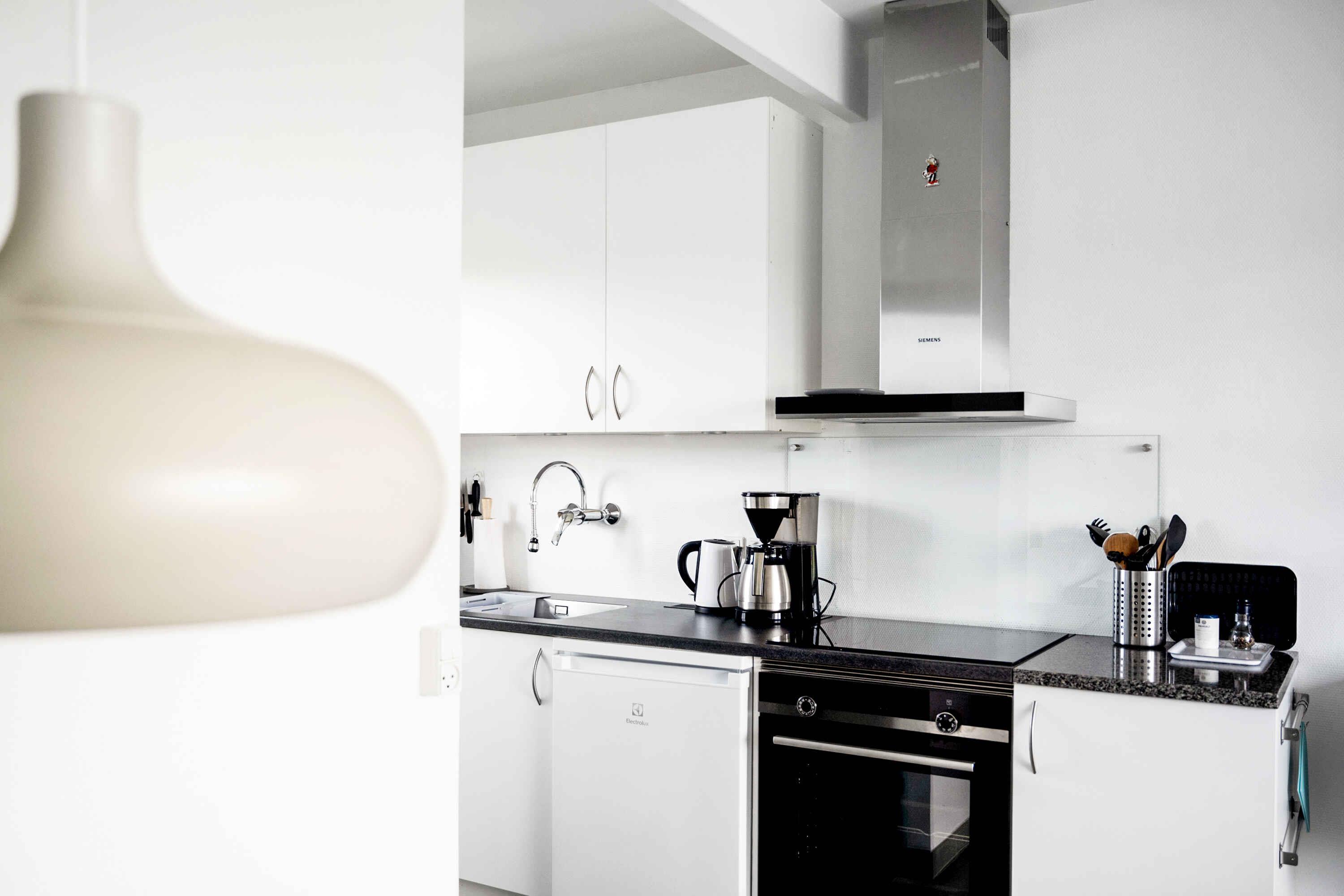 Lejligheden er lyst og venligt indrettet med pænt, moderne inventar og en hems, hvor der er en dobbeltseng. Fra stuen er der udgang til en privat terrasse med havemøbler og grill, så der er basis for mange skønne sommeraftener under åben himmel.