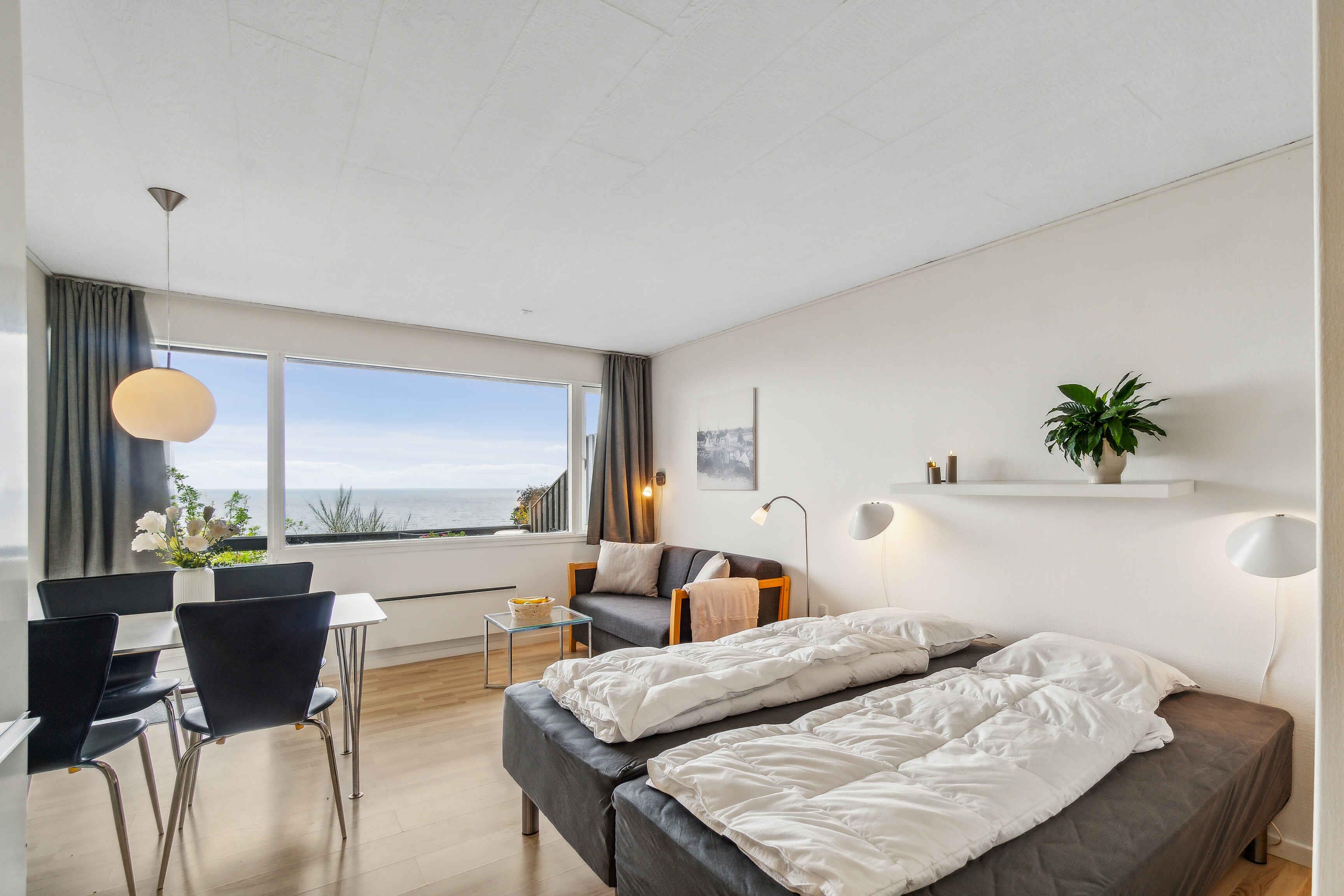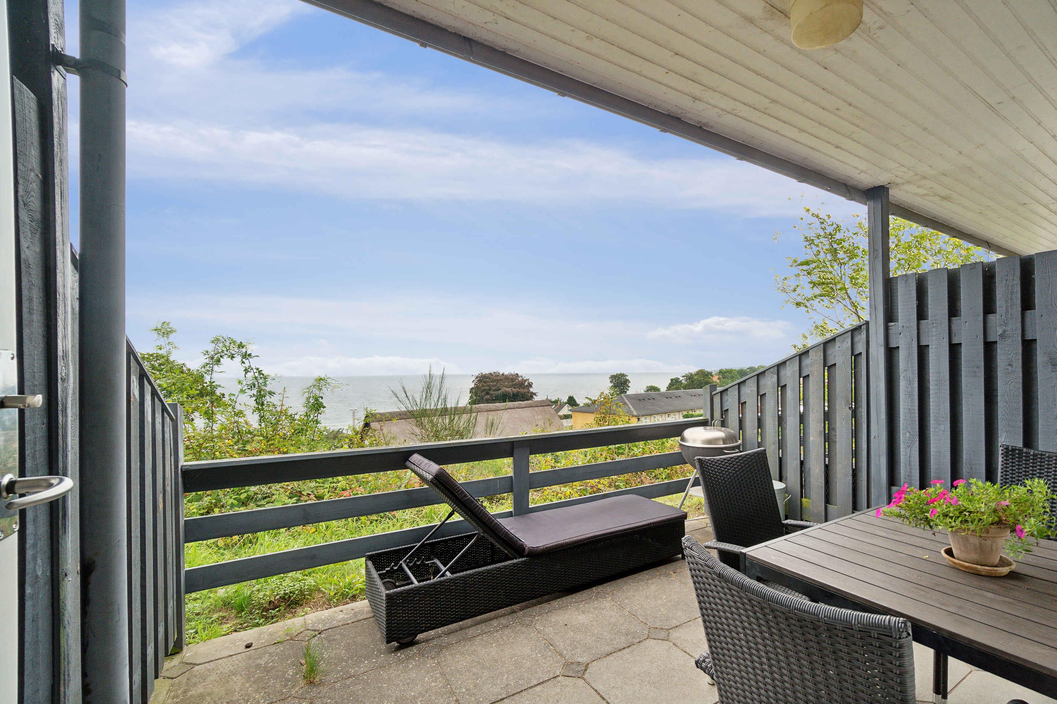 Charmerende ferielejlighed i Sandkås med panoramaudsigt over havet og kort afstand til stranden.