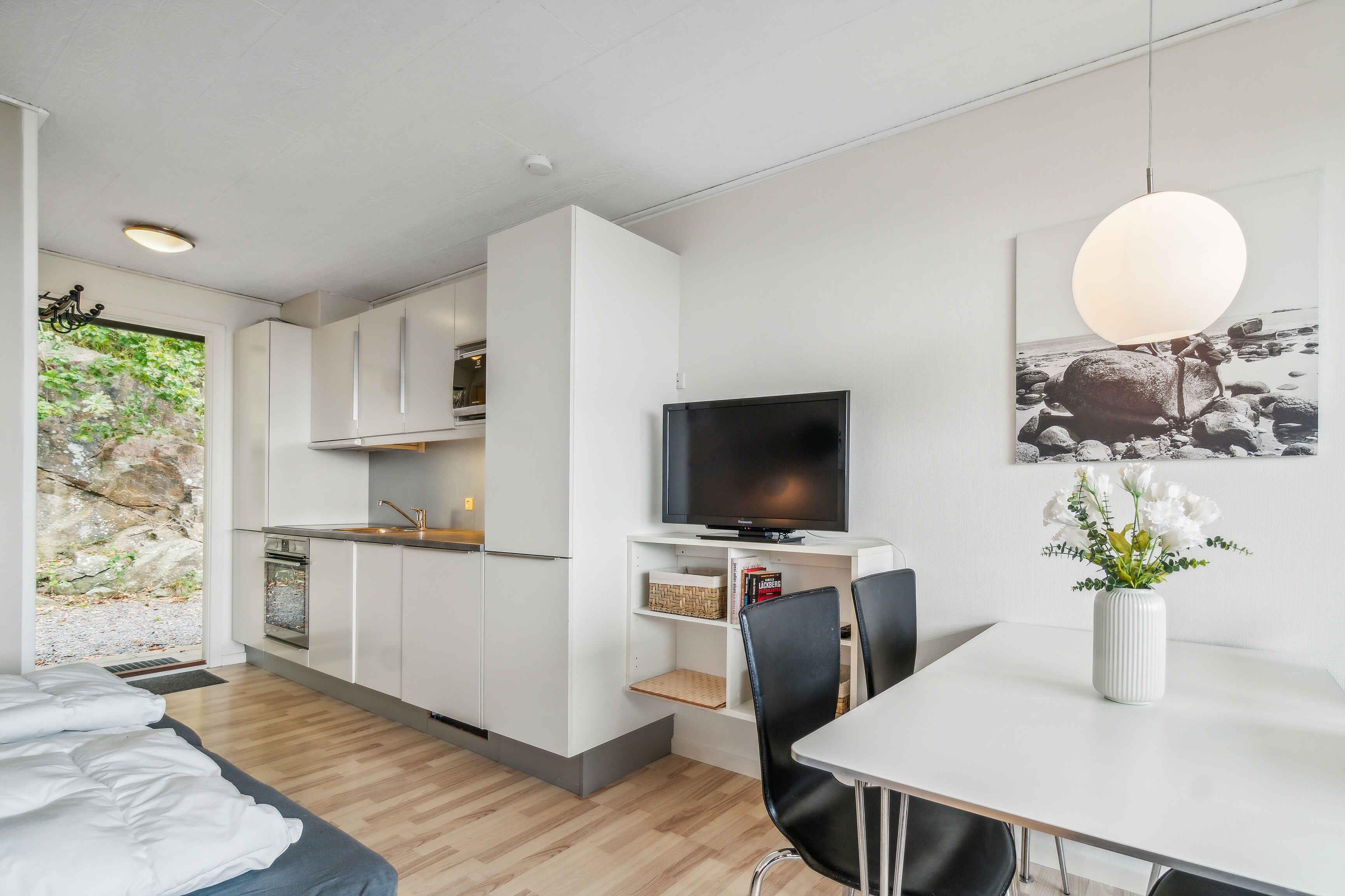 Velkommen til vores charmerende ferielejlighed i Sandkås, en idyllisk sommerhusdestination på den smukke ø Bornholm. Denne hyggelige og velindrettede lejlighed på 28 m² tilbyder en uforglemmelig ferieoplevelse med en fantastisk havudsigt, som kan nydes direkte fra stuen. Her får du en unik mulighed for at vågne op til lyden af bølgerne, der skvulper mod kysten, og slutte dagen af med en betagende solnedgang over Østersøen. Lejligheden er designet med tanke på komfort og funktionalitet og har plads til op til fire personer. Den er perfekt til en lille familie, der ønsker at tilbringe tid sammen i naturskønne omgivelser. Indretningen omfatter en hyggelig stue med en komfortabel sovesofa, der rummer to sovepladser, samt yderligere to sovepladser, hvilket skaber en hyggelig og intim atmosfære. For dem, der ønsker at slappe af indendørs, er der både tv og internet, så du kan holde dig opdateret og underholdt under hele dit ophold. Køkkenet er fuldt udstyret med moderne faciliteter, så du nemt kan tilberede lækre måltider. Du kan nyde dine måltider i spiseområdet, mens du beundrer den smukke udsigt over havet. Der er også en lille hyggelig terrasse, hvor du kan nyde morgenkaffen eller et glas vin om aftenen. Til el-bilen er der også en lade-stander fra Clever Lejlighedens beliggenhed er et stort plus, kun 130 meter fra stranden men ligger op ad en klippeskråning og er derfor ikke egnet til gangbesværede. Dette giver dig nem adgang til sol og badning på varme sommerdage. Den nærliggende strand er perfekt til en dag med afslapning, svømning eller en hyggelig picnic. Området byder også på smukke vandreruter, cykelstier og mange spændende seværdigheder i nærheden. Du kan udforske de maleriske klippeformationer, besøge lokale kunsthåndværkere eller tage på en sejltur for at se øens fantastiske kystlinje fra vandet. Allinge er kendt for sin hyggelige atmosfære, med charmerende gader, caféer og butikker, hvor du kan finde lokale delikatesser og souvenirs. Om sommeren er byen vært for flere kulturelle arrangementer og markeder, der giver dig et indblik i øens rige kultur og historie. Vi ser frem til at byde dig velkommen til vores dejlige ferielejlighed i Allinge, hvor du kan opleve Bornholms skønhed og ro i fulde drag. Uanset om du søger en aktiv ferie fyldt med oplevelser eller blot ønsker at slappe af og nyde naturen, vil vores lejlighed være det perfekte udgangspunkt for dit ophold på Bornholm..