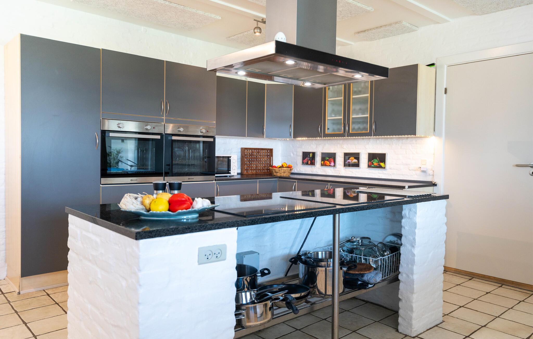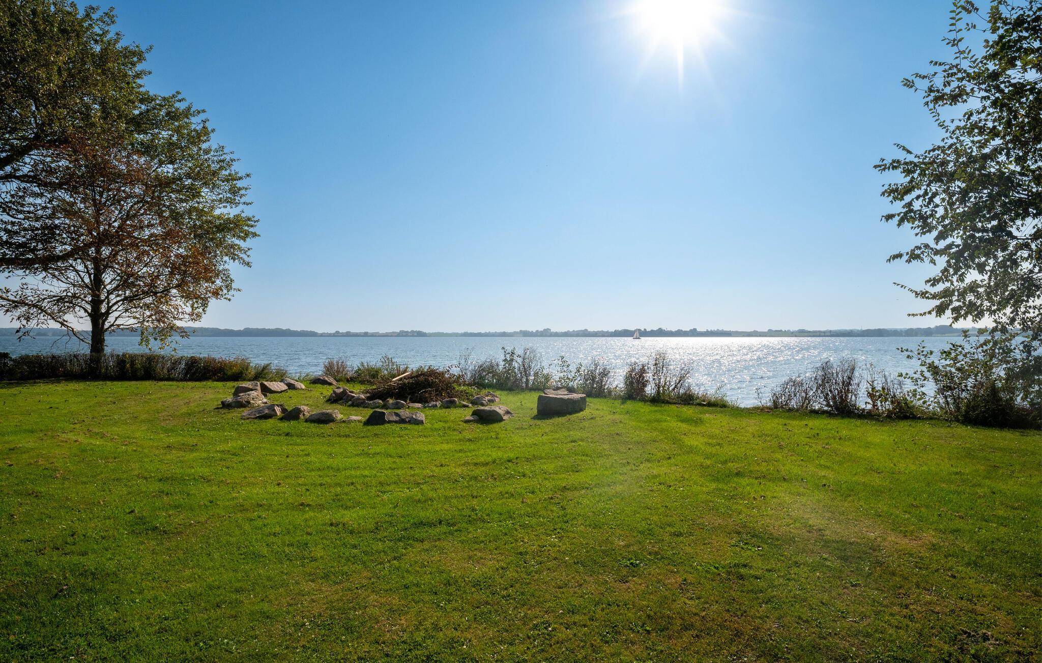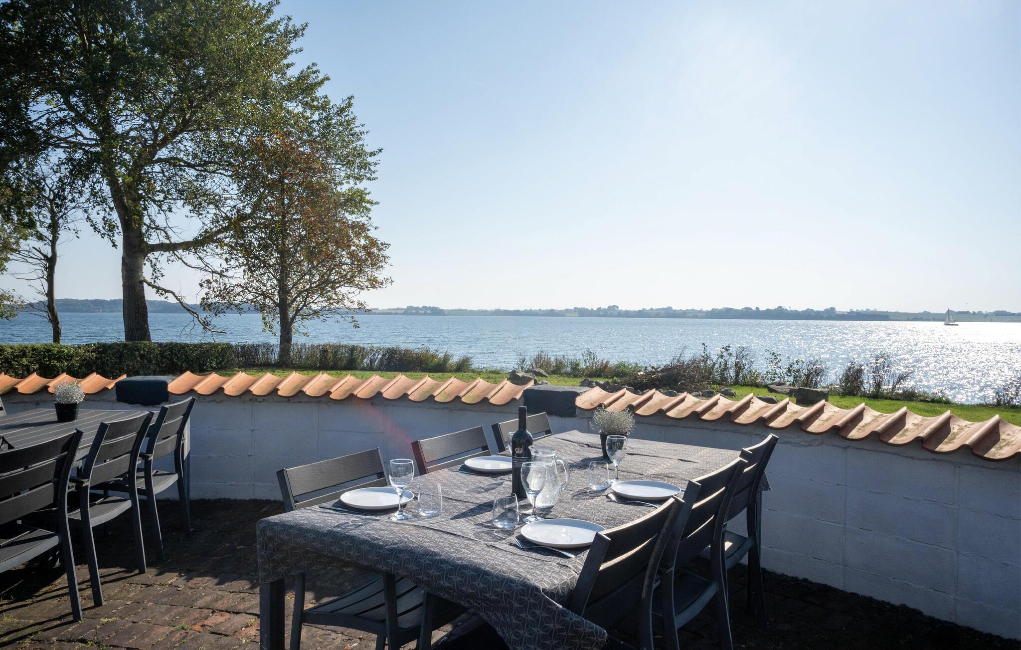 I den flotte badeafdeling er der både opvarmet pool, vandrutsjebane, spabad og sauna. En glasgang forbinder poolområdet harmonisk med hovedhuset og giver adgang til en afskærmet terrasse med en betagende udsigt over sundet. Den store naturgrund lægger op til afslappende timer med direkte adgang til stranden, en lille fiskerihavn og en lystbådehavn. Nyd udsigten fra den store sydvendte terrasse, som ligger stort set lige ud til vandet eller slap af på tagterrassen på øverste etage.