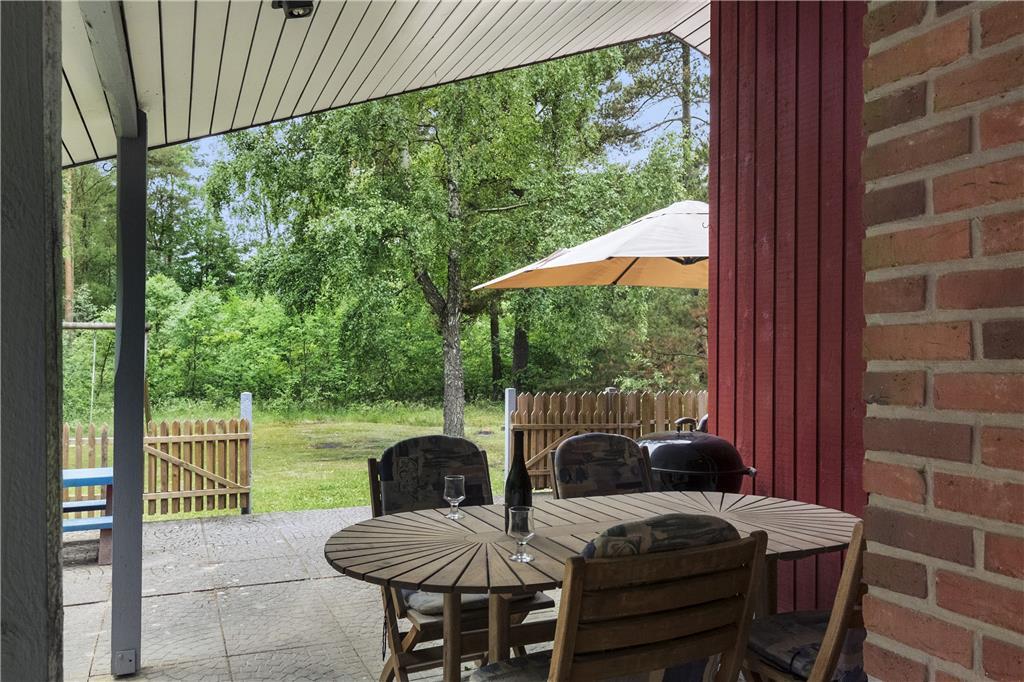 Grunden er en hyggelig lille have og den ligger afskærmet fra de nærmeste naboer, så man kan være sig selv og bare nyde freden og roen. Terrassen og haven er indhegnet, hvorfor huset egner sig særdeles godt, hvis man har hund med eller små energirige børn. På husets overdækkede terrasse er der god plads til grill, afslapning og rendyrket råhygge! Naturen er allestednærværende og blot en kort gåtur fra huset ligger Kattegats kyst og områdets skønne natur.