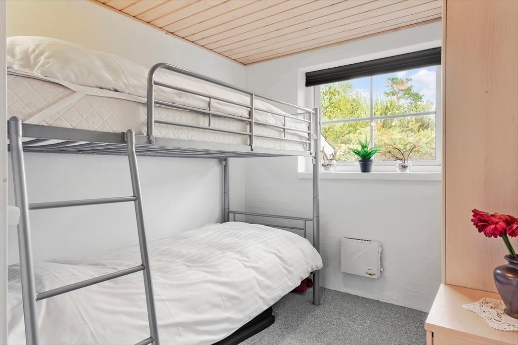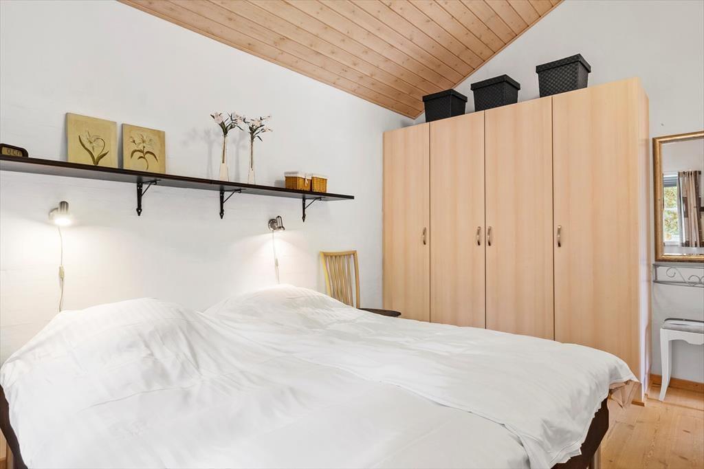 Her er bare rigtig rigtig hyggeligt og absolut de bedste rammer for en afslappende ferie i skovens dybe, stille ro. Huset byder på 3 dejlige soveværelser med masser af skabsplads. Der er desuden en hems med et par madrasser på - et sikkert hit hos børnene. På husets store badeværelse er der spabad og mens livet nydes i boblerne, kan familien ty til gæstetoilettet.