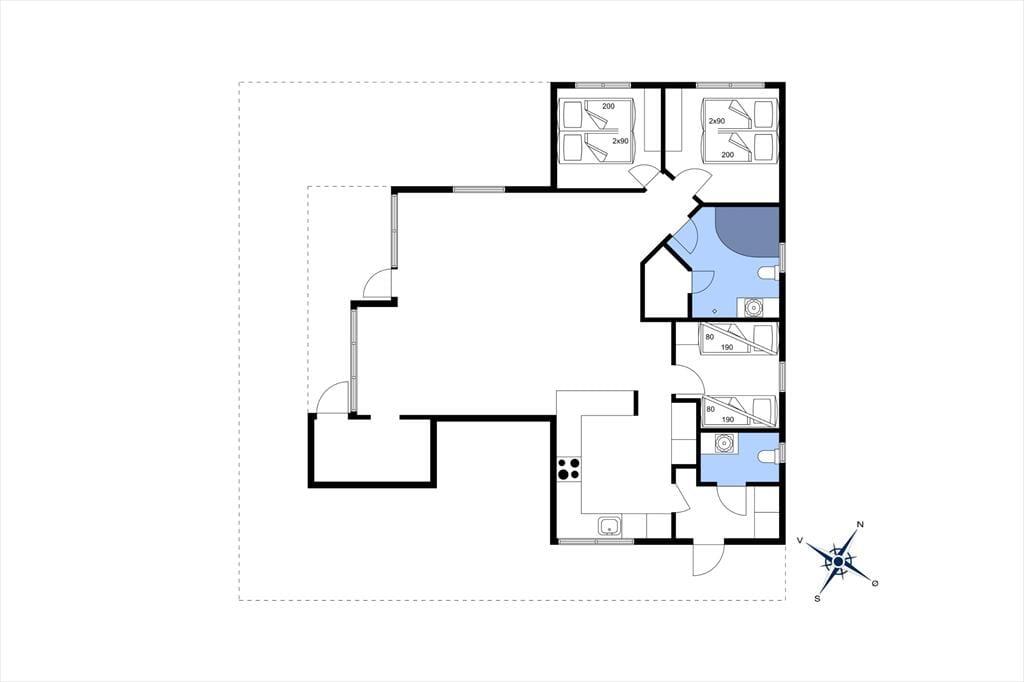 Da sommerhuset blev opført i 2009, blev der lagt vægt på, at det skulle være både hyggeligt og funktionelt. Derfor er de 104 m2 særdeles godt udnyttet, og kiploftet og de lyse trævægge giver rummene den helt rette sommerhusatmosfære. Planløsningen byder blandt andet på en entré med vaskefaciliteter, et gæstetoilet, et badeværelse og tre soveværelser med i alt otte sengepladser. Badeværelset er det værd at dvæle ved, for her er der nemlig både sauna og spabad, hvilket er helt perfekt, hvis I virkelig trænger til at koble af. Afslapningsstunderne kan også foregå i opholdsrummet, der består af køkken og stue i åben forbindelse. Her kan I samles omkring spisebordet og i sofaafdelingen, og der er også en alkove, der fungerer som en ekstra lille hyggekrog.