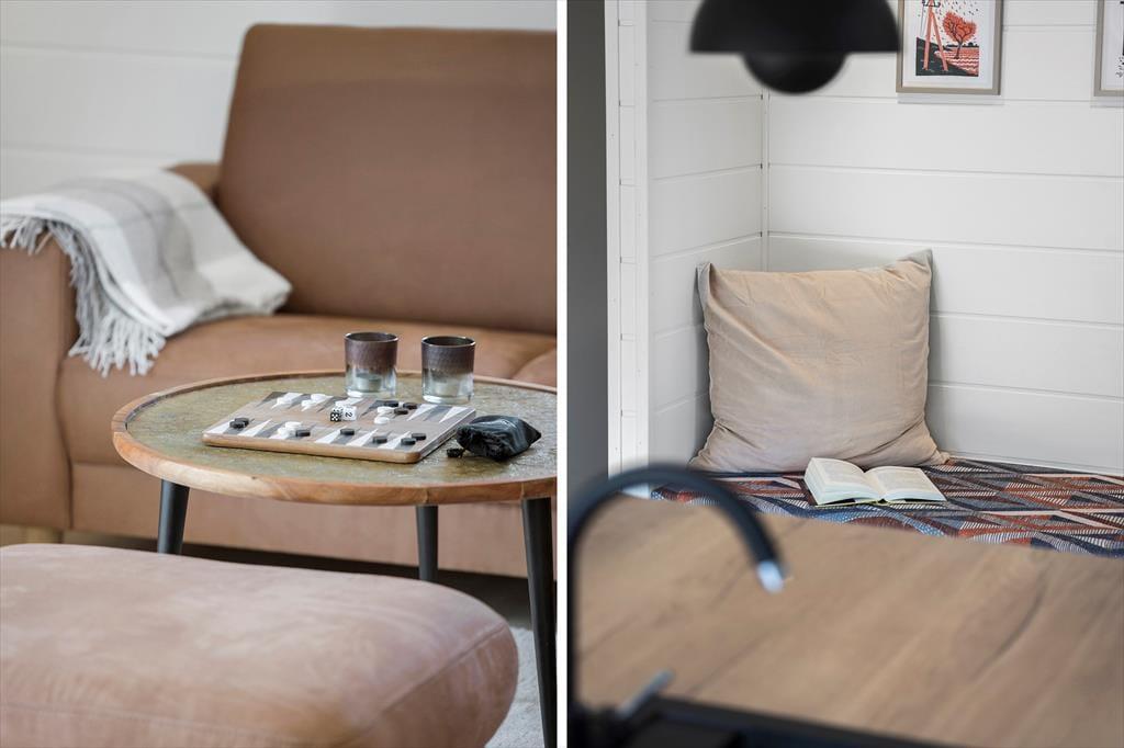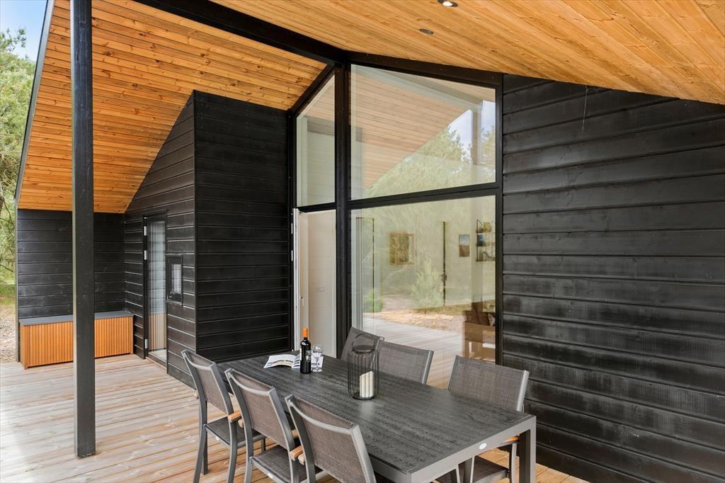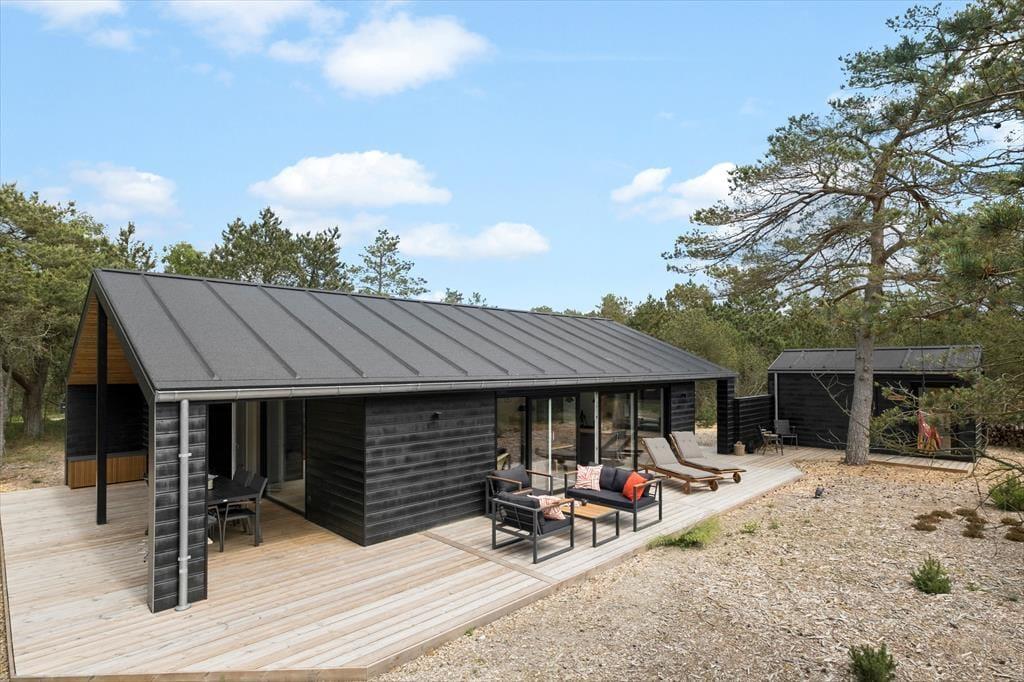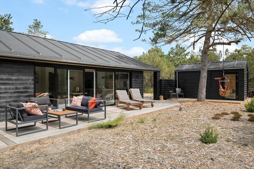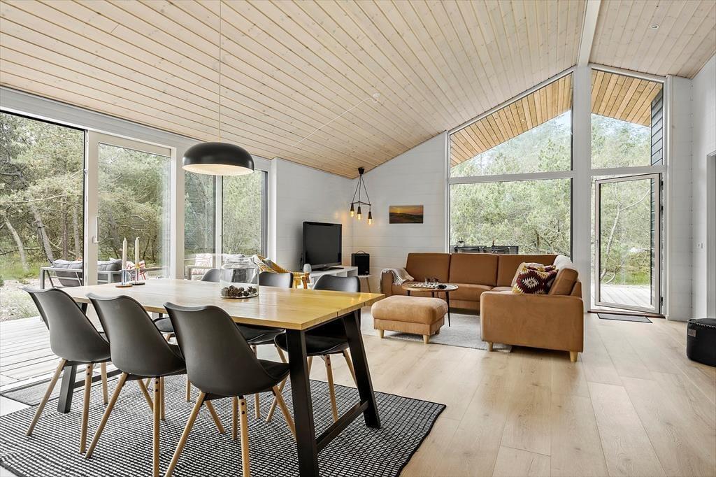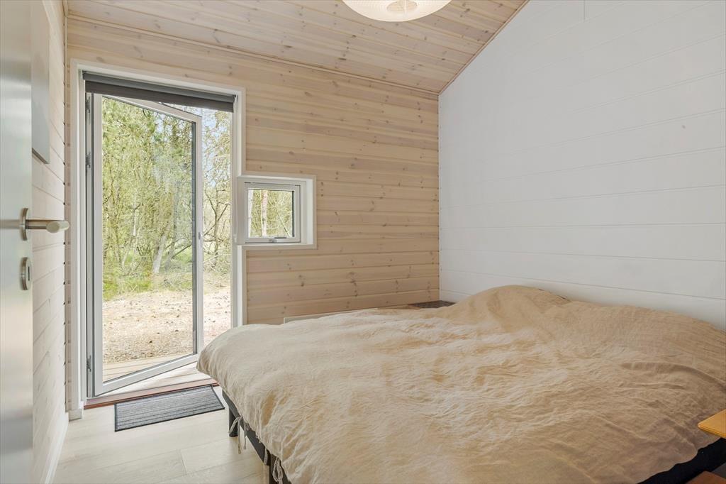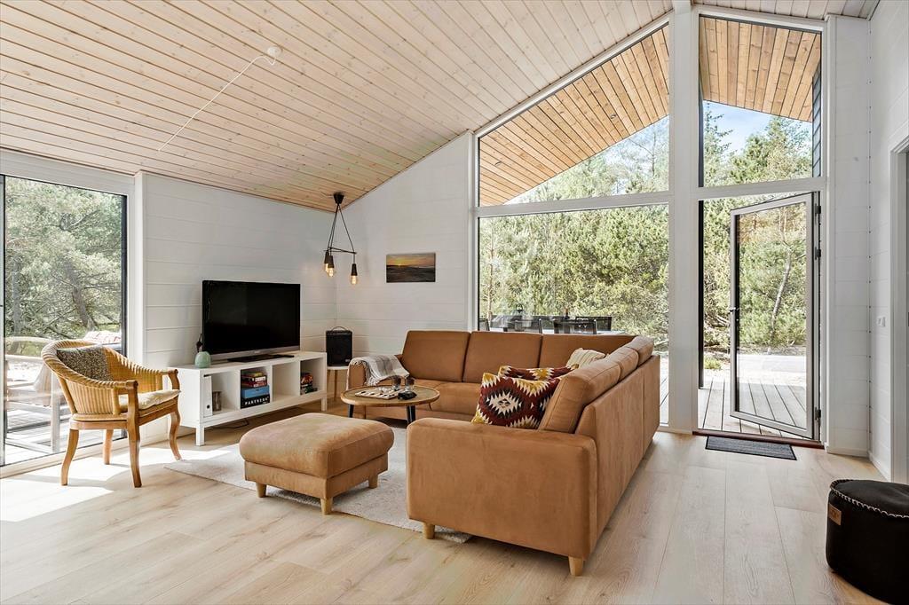 Dette nybyggede sommerhus byder på en moderne og lys indretning, der straks får dig til at føle dig hjemme. Indenfor finder du hyggelige kroge, hvor du kan slappe af med en god bog eller nyde en kop kaffe. Det åbne køkken er smukt forbundet med stuen, hvilket gør det let at være sammen, mens måltiderne tilberedes. Stuen er indrettet med komfortable møbler. Her kan du sætte dig godt til rette og nyde roen og hyggen, som kun et sommerhus kan tilbyde.
