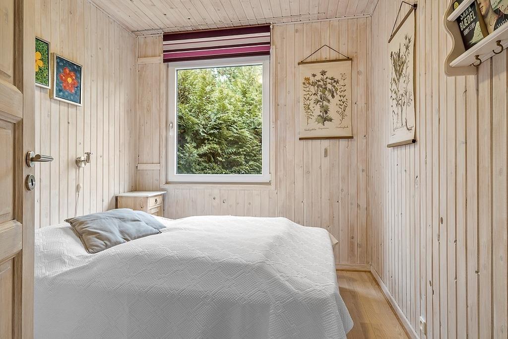 Dette velindrettede sommerhus byder på en lys og venlig atmosfære, der straks får dig til at føle dig hjemme. Stuen er indrettet med komfortable møbler og vinduespartier, der lader sollyset strømme ind og giver en smuk udsigt til den omkringliggende natur. Forestil dig at tilbringe aftener foran brændeovnen med en god bog eller en hyggelig film på tv'et, mens flammerne knitrer og spreder varme.