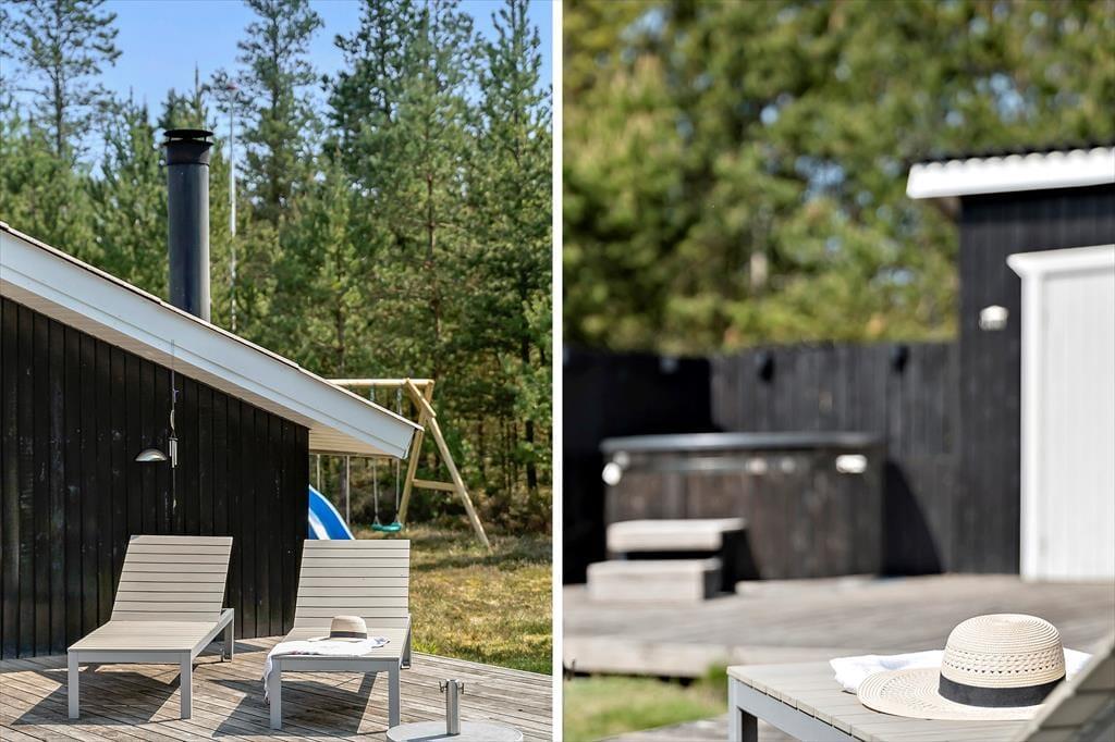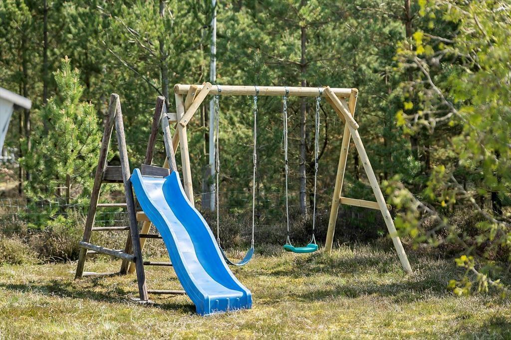 Udenfor venter en stor naturgrund, hvor høje træer skaber en fredelig og privat atmosfære. For børnene er der en gynge, hvor de kan lege under trækronerne, mens du forbereder aftenens måltid på grillen og senere kan I alle riste skumfiduser over bålet og nyde duften af røg og frisk skovluft. Den rummelige terrasse er det perfekte sted at nyde morgenkaffen, mens du lytter til fuglenes kvidren og mærker dagens første solstråler på ansigtet.