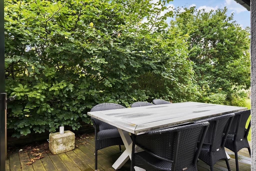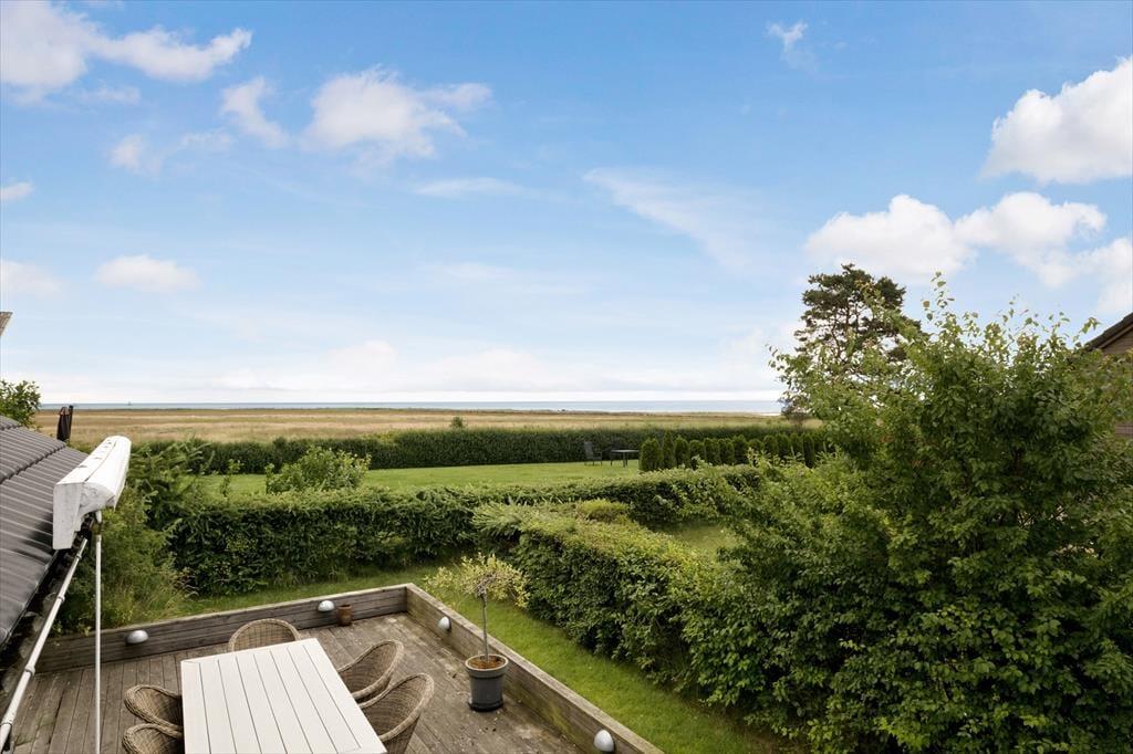 Udendørsområdet er en sand oase, hvor du kan nyde både sol og skygge. Den store terrasse er det perfekte sted at tilbringe tid med dine nærmeste, uanset om du vil nyde din morgenkaffe i solopgangen eller grille om aftenen, mens solen går ned. Området er omgivet af grønne områder og giver masser af plads til både leg og afslapning. Den ro-givende natur og den betagende udsigt over Mariager Fjord skaber en følelse af fred og velvære, og du kan høre fuglene kvidre, mens du slapper af. Hvis du er til en forfriskende dukkert, kan du hurtigt tage turen ned til både Mariager Fjord og Kattegat – perfekt til en afslappende dag ved vandet