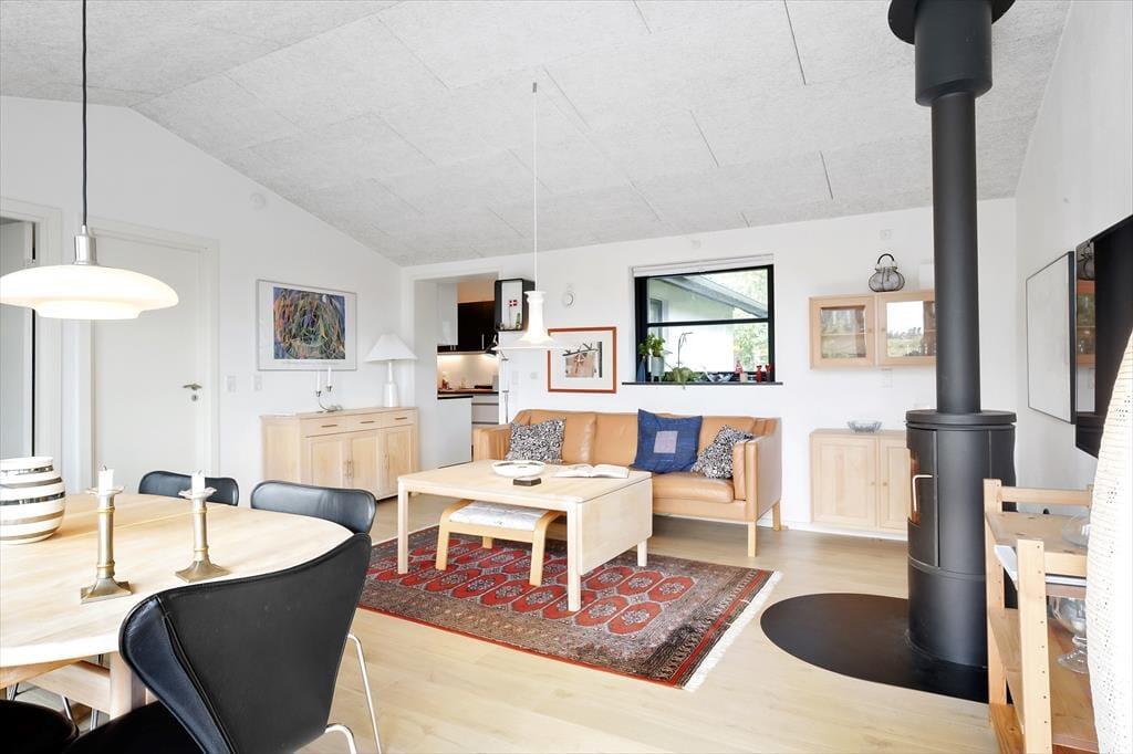 Når du træder ind i sommerhuset, bliver du mødt af et lyst og indbydende opholdsområde, hvor du straks kan mærke feriestemningen sænke sig. Huset er indrettet med fokus på komfort og hygge, og de store vinduer giver et fantastisk lysindfald og en direkte udsigt til den vidunderlige natur og Mariager Fjord. Efter en lang dag kan du slappe af i stuen, hvor du kan tænde op i brændeovnen og nyde den varme og hyggelige atmosfære. Sommerhuset har desuden et anneks, som giver ekstra plads til op til to personer – ideelt til ekstra gæster eller en rolig stund for sig selv. Det indbydende soveværelse i hovedhuset giver dig mulighed for at vågne op til den dejlige ro, så du kan starte dagen med energi og glæde.