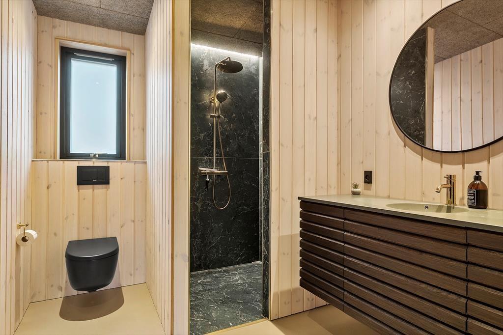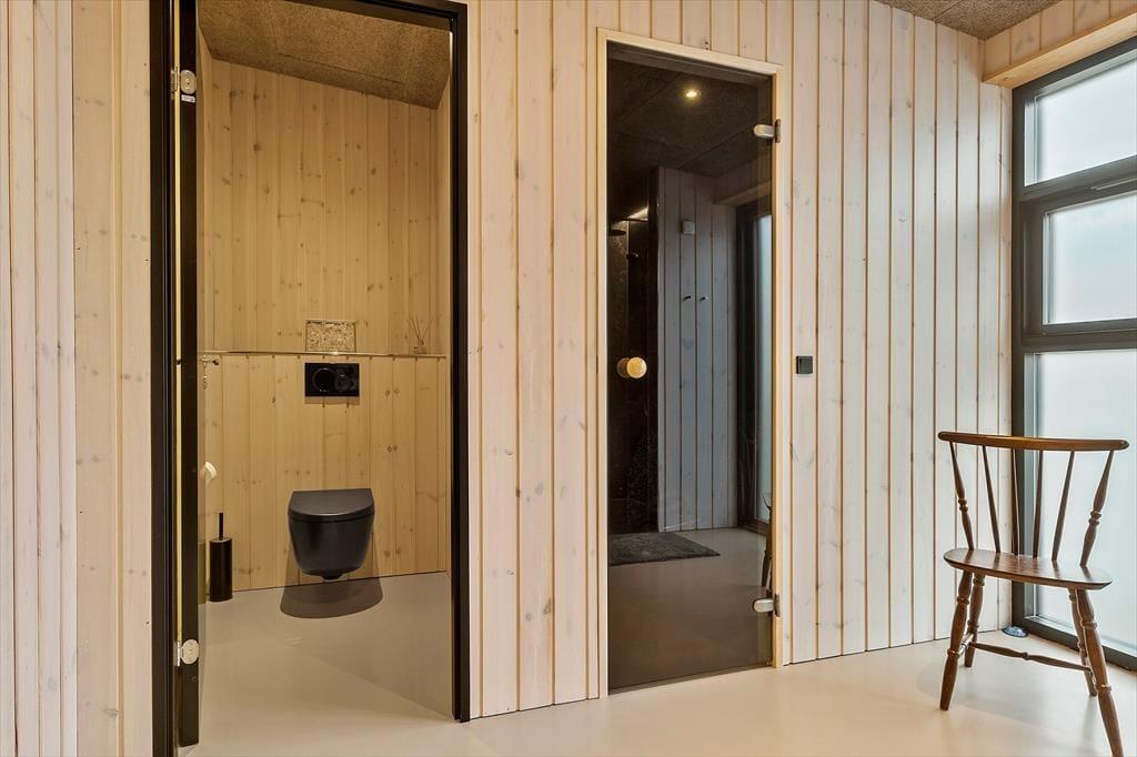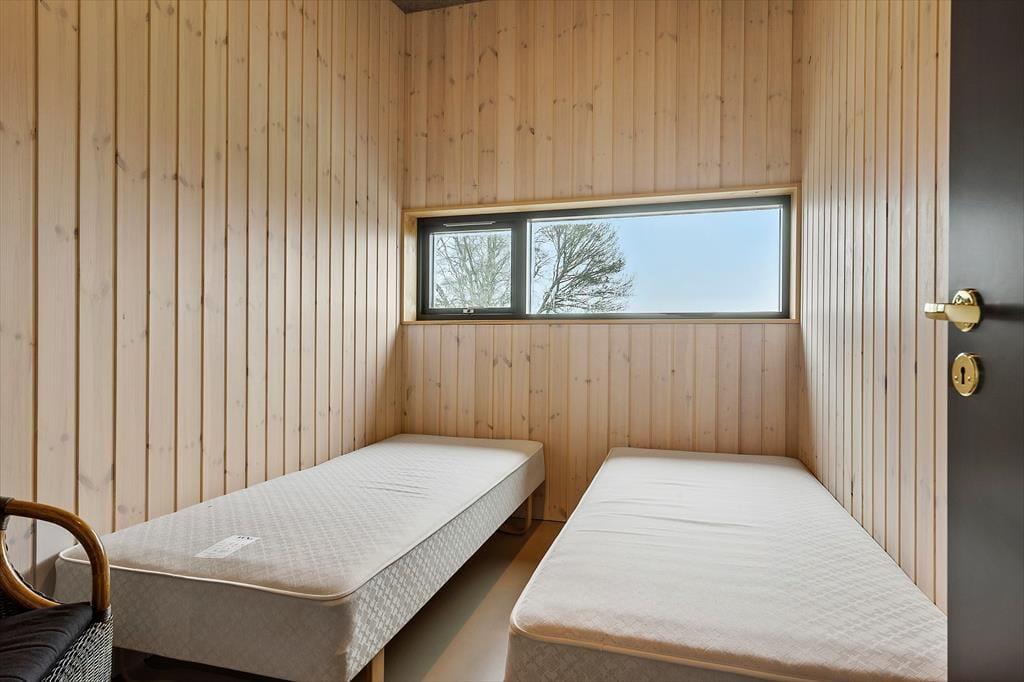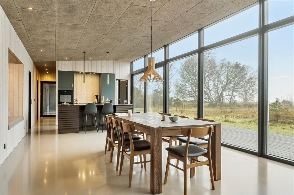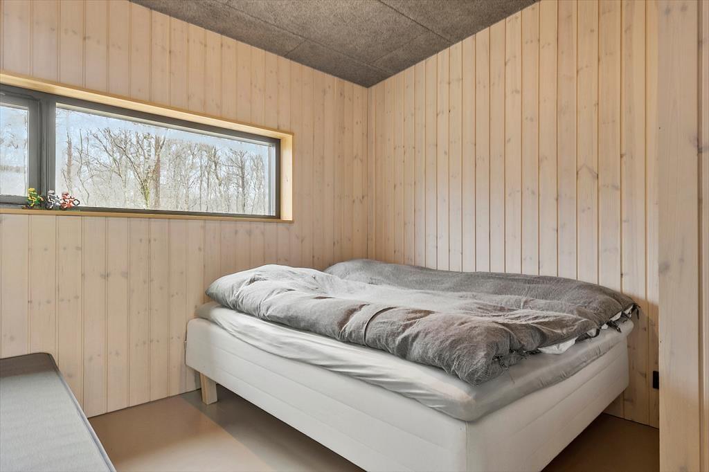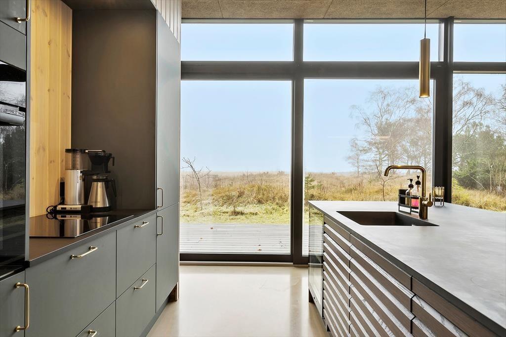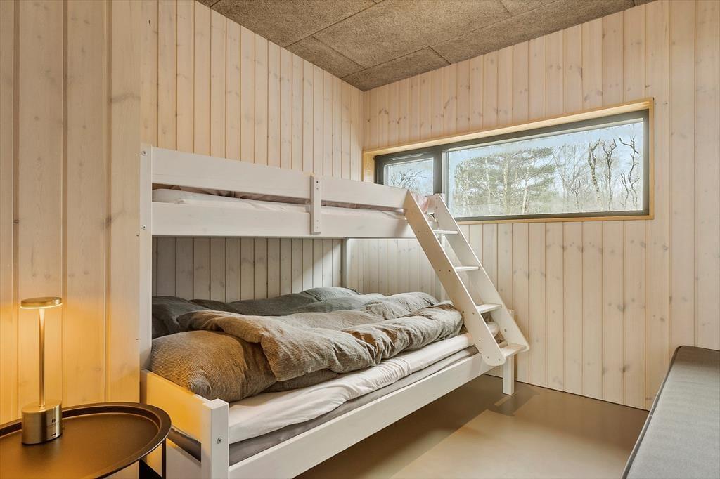 Sommerhuset er indrettet med stil og omtanke, og så snart du træder indenfor, mærker du den indbydende atmosfære. Lyse farvetoner, kvalitetsmaterialer og moderne møbler skaber en rolig og harmonisk stemning, hvor du straks føler dig hjemme. Det store opholdsrum fungerer som husets naturlige samlingspunkt med et åbent køkken og en hyggelig spiseplads, hvor måltiderne kan nydes med udsigt til den omkringliggende natur. I siddekrogen kan du synke ned i en blød stol med en god bog eller nyde en kop kaffe, mens du kigger ud over landskabet. En smart detalje ved sommerhuset er den separate soveafdeling, der giver ekstra privatliv til familier eller vennepar, der rejser sammen. Her finder du rummelige soveværelser og et badeværelse, så alle kan trække sig tilbage til eget fredelige hjørne efter en dag med oplevelser.