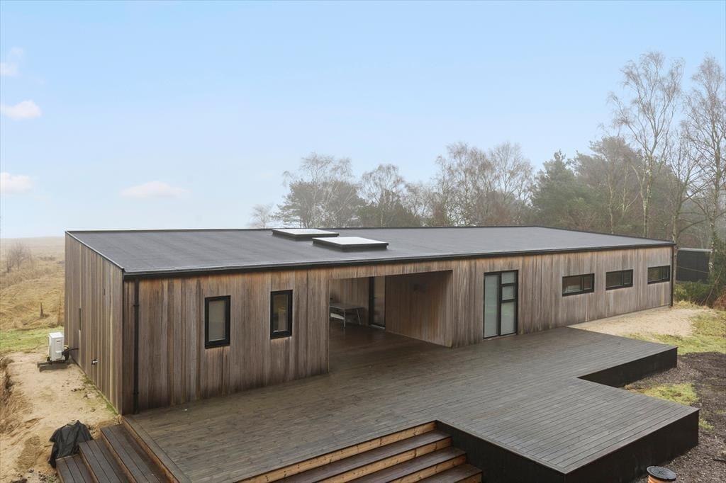 Sommerhusets beliggenhed er et kapitel for sig. Fra husets store vinduespartier kan du nyde den fantastiske udsigt over de grønne omgivelser, og fra terrassen bliver naturoplevelsen endnu mere nærværende. Terrassen er delvist overdækket, så du kan sidde ude i al slags vejr, og havemøblerne indbyder til lange, afslappede dage i det fri. Start morgenen med en stille stund på terrassen, mens duggen stadig ligger på græsset, og glæd dig til hyggelige aftener, hvor grillen kan tændes, og familien samles om et godt måltid under åben himmel