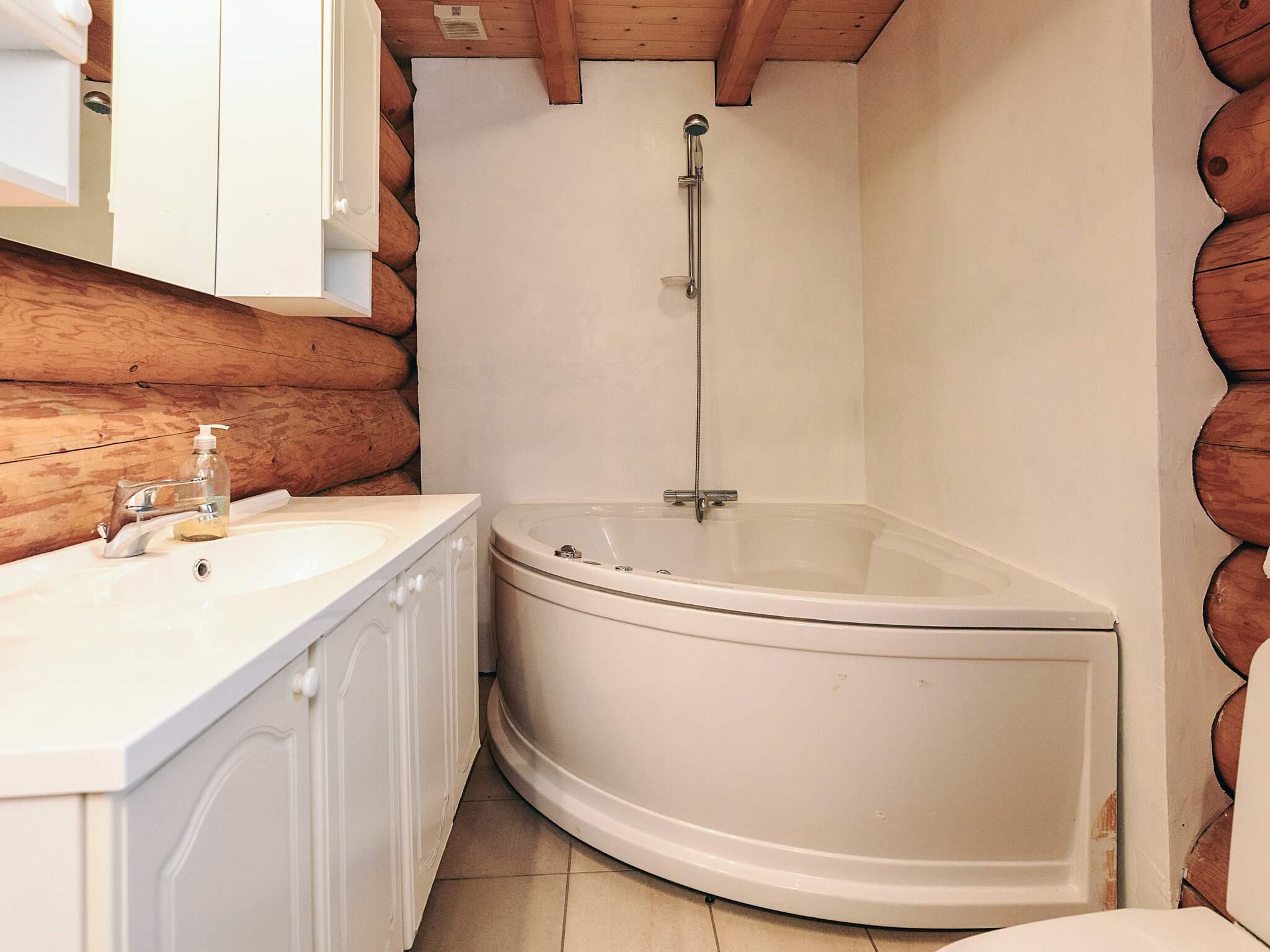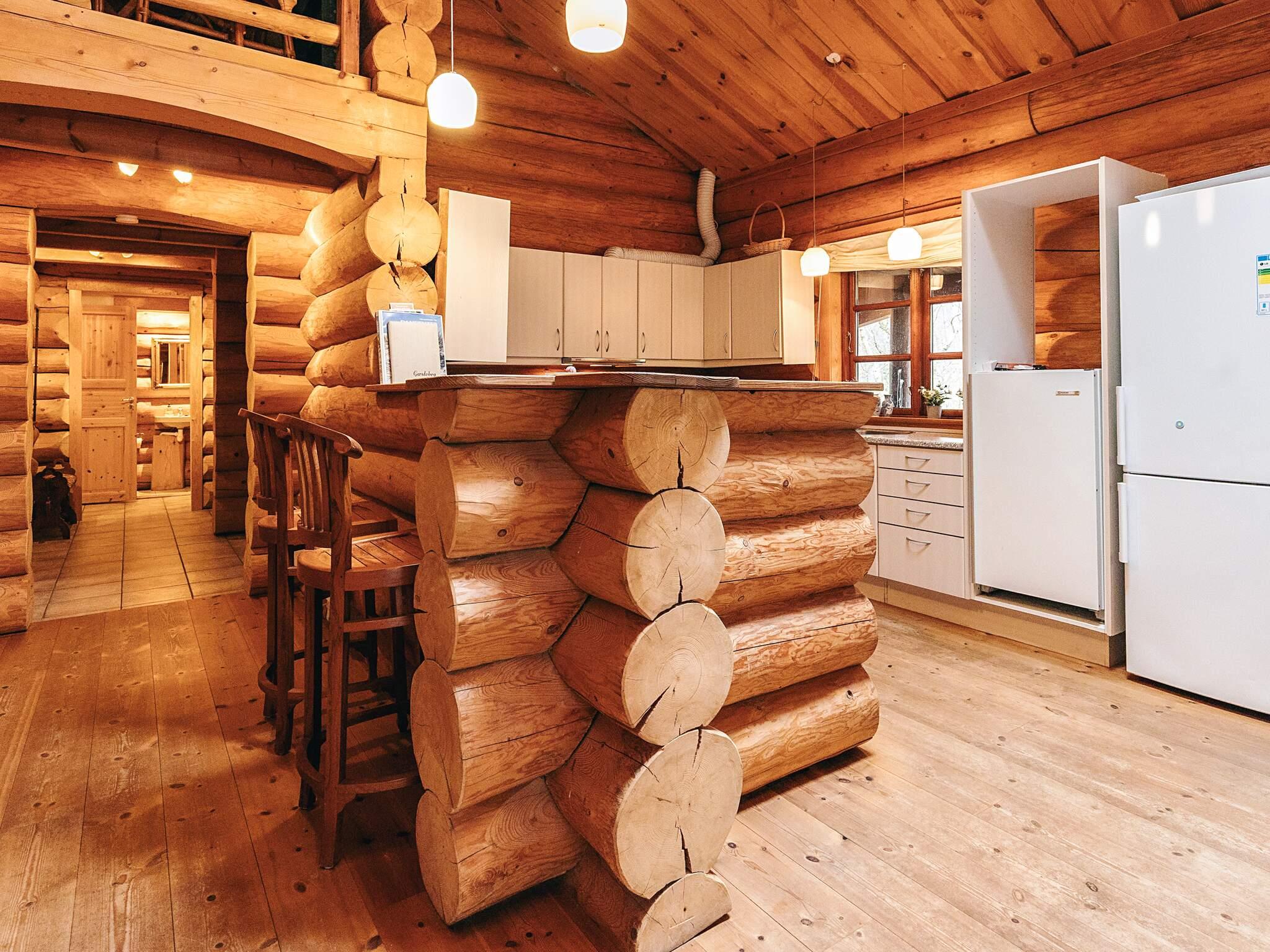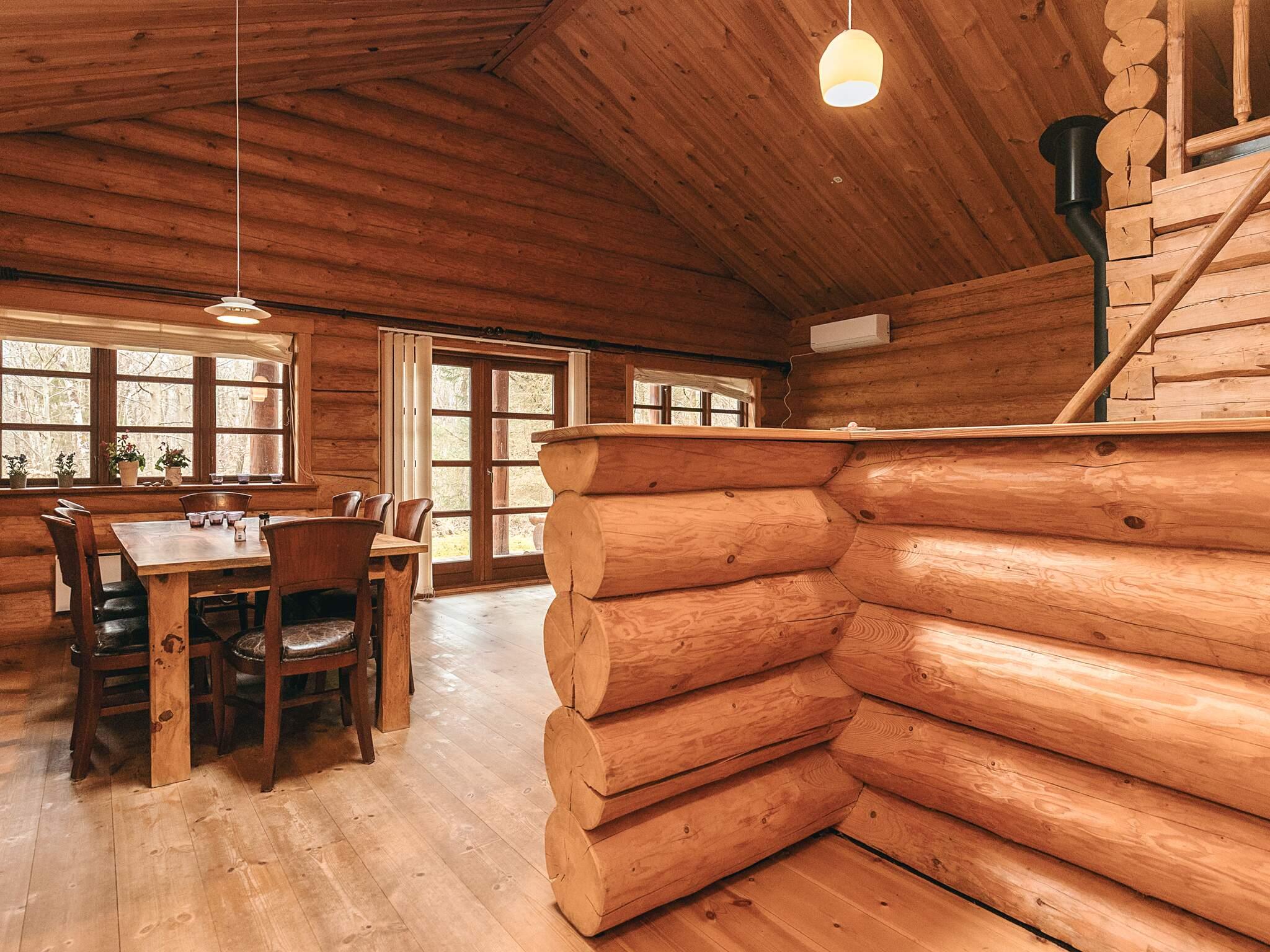 Unikt bjælkehus med spabad og fantastisk miljø på stor naturgrund. Her kan I i ro og mag nyde stilheden og iagttage fasaner og harer løbe omkring. Huset er spændende indrettet med loft til kip, som giver en helt speciel rummelighed. Badeværelse med spabad, bruser, toilet og håndvask samt et mindre gæstetoilet. Rummeligt køkken/alrum med udgang til stor terrasse, som er omkring hele huset. I stuen er der hyggeligt tv-hjørne, hvor parabolen sørger for alverdens tv-programmer. Trappe til hems, hvor der er indrettet sovepladser samt legerum til børnene.
