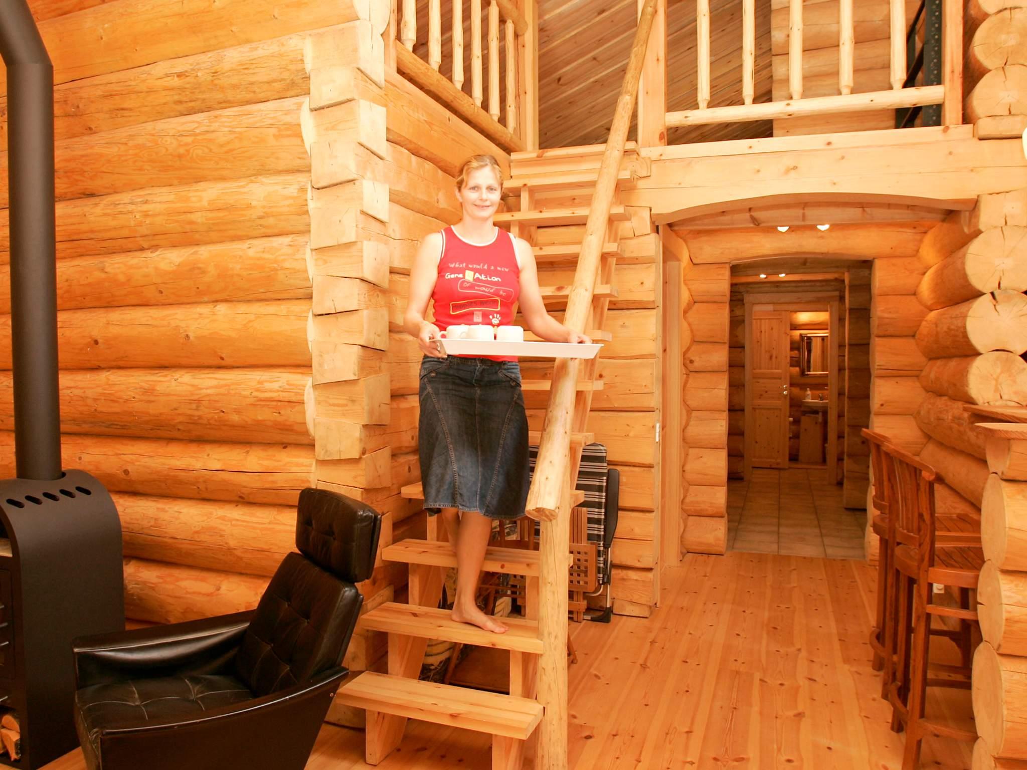 1 Opholdsstue: Brændeovn, stereoanlæg med cd, dvd-afspiller, tv, parabol, høj stol
