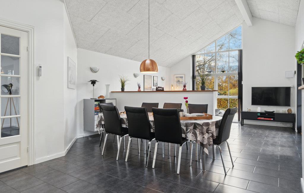 Velkommen til Helbserskov Strand og dette skønne hus, hvor der er plads til to familier eller en ferie med jeres gode venner. Indretningen er enkel og smagfuld i sort/hvide kontraster og har en masse dejlige faciliteter, som giver jer de bedste forudsætninger for nogle hyggelige feriedage. Giv jer god tid til madlavningen i køkkenet, hvor der er plads til, at børn og voksne kan hjælpes ad, mens andre måske er mere humør til et slag bordtennis. Oven på en lang frisk gåtur ved stranden er det herligt at læne sig tilbage i boblebadets lune vand.