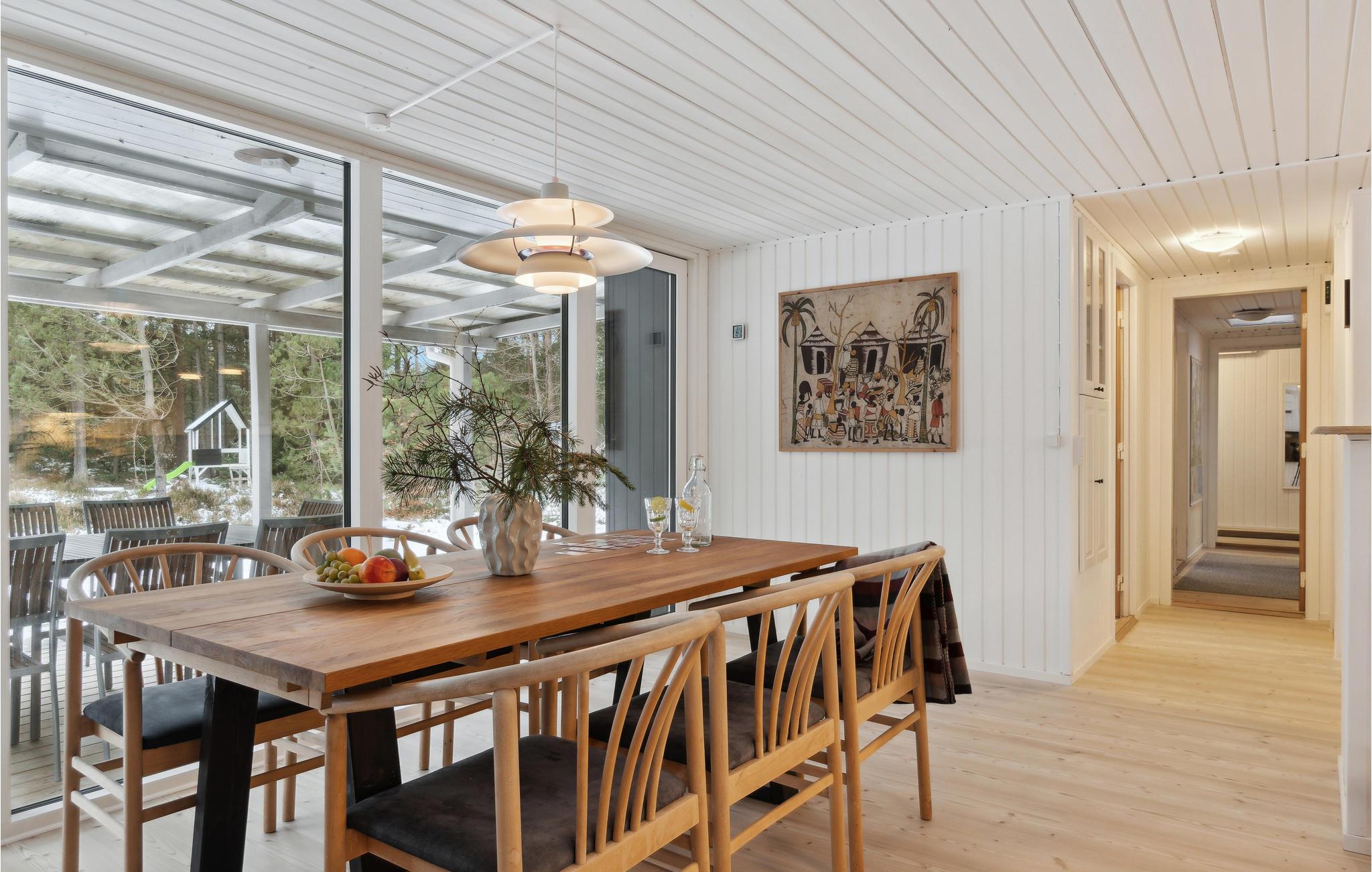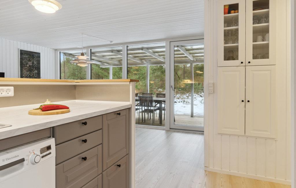 Velkommen til dette attraktive hus, der ligger i skønne omgivelser ved Helberskov Strand, og hvor der venter jer en herlig base for den lidt større familie. Huset er dejligt indrettet med lyse træpaneler, komfortable møbler og fin kunst på væggene, der gør det nemt at slappe af med det samme, I ankommer. Den åbne stue får et lækkert lysindfald gennem de store vinduespartier, der samtidig giver en skøn udsigt til omgivelserne. Køkkenet er ganske veludstyret, så tag jer blot god tid med madlavningen og kræs om livretterne, inden der dækkes op ved det flotte spisebord til en middag med udsigt.