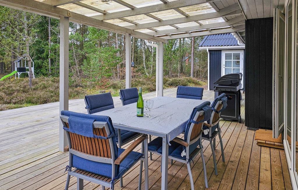 Udeområdet er tilsvarende dejligt med masser af plads til både leg og afslapning. Huset ligger på en dejlig, ugeneret grund med masser af gode legeredskaber til børnene, og her er også en grill, så I kan runde aftenen af med saftige bøffer og et godt glas vin i den sene sol.