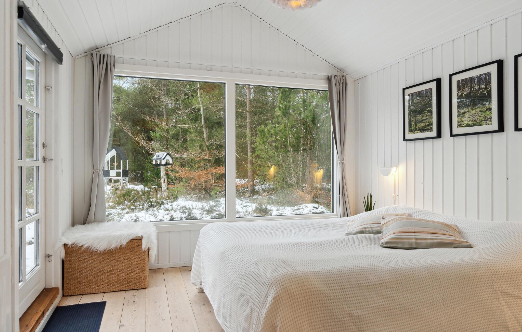 Charmerende træhus ved Helberskov Strand med plads til familieferie og skøn udsigt.