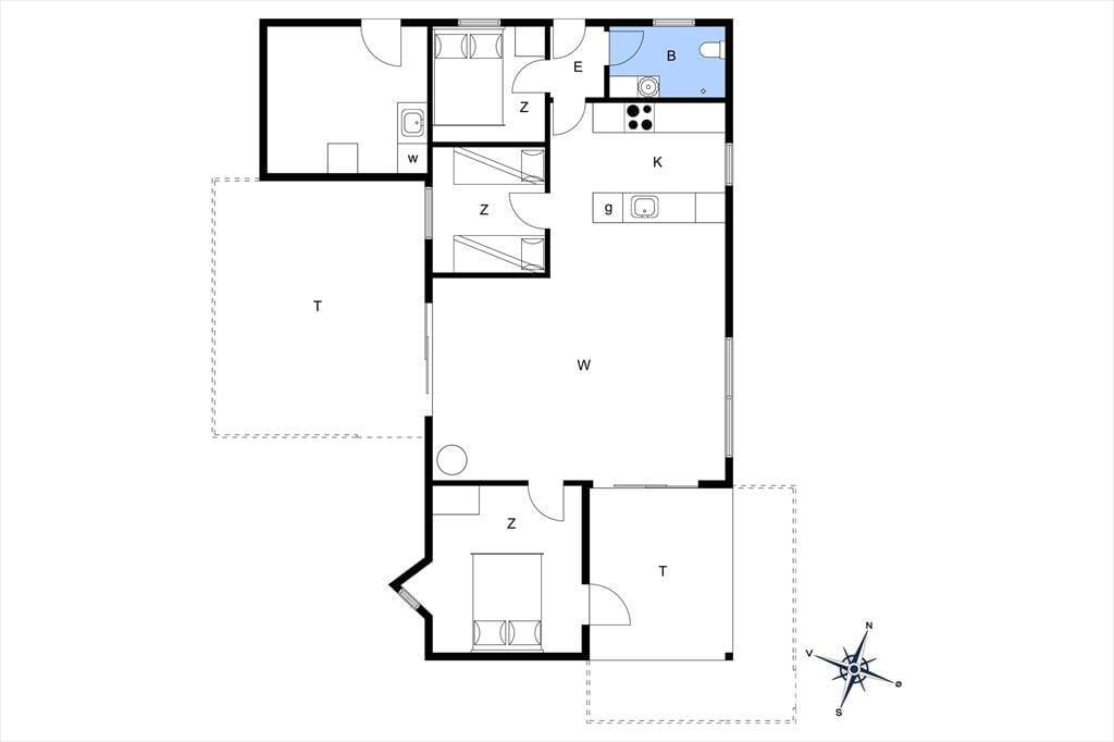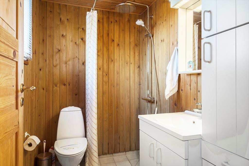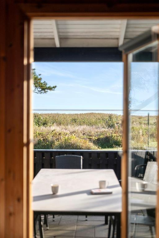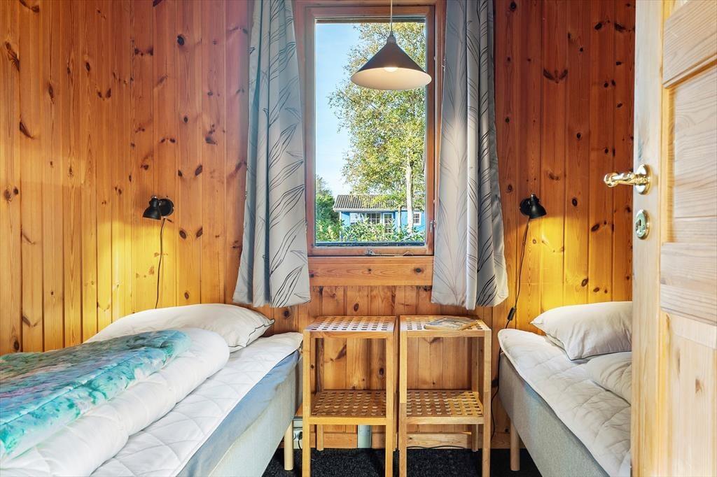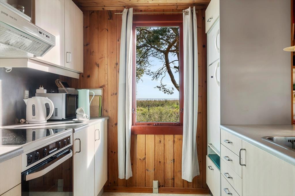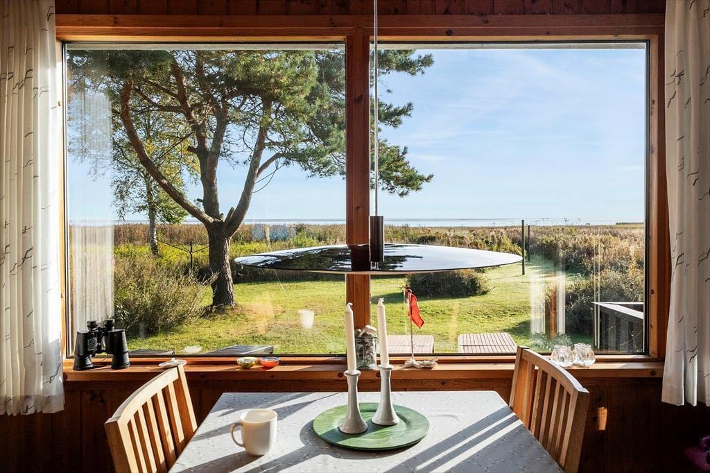 Med sådan en havudsigt behøver I egentlig ikke at have så meget på programmet i løbet af ferien. I hvert fald føles det fantastisk at kunne sætte sig ved spisebordet med en god kop kaffe og morgenmaden, mens solen hæver sig op over det glitrende vand – og hvis I finder brætspil, avisen eller strikketøjet frem, er det nemt at blive siddende i flere timer i de hyggelige og naturskønne omgivelser. I stuen står der en brændeovn i det ene hjørne, og den åbne forbindelse til køkkenet gør det nemt at smutte hen for at fylde mere kaffe i koppen eller at begynde at forberede frokosten. Ved entréen ligger et badeværelse med bruser, og endelig består planløsningen også af tre gode soveværelser, mens der er vaskemaskine i udhuset.