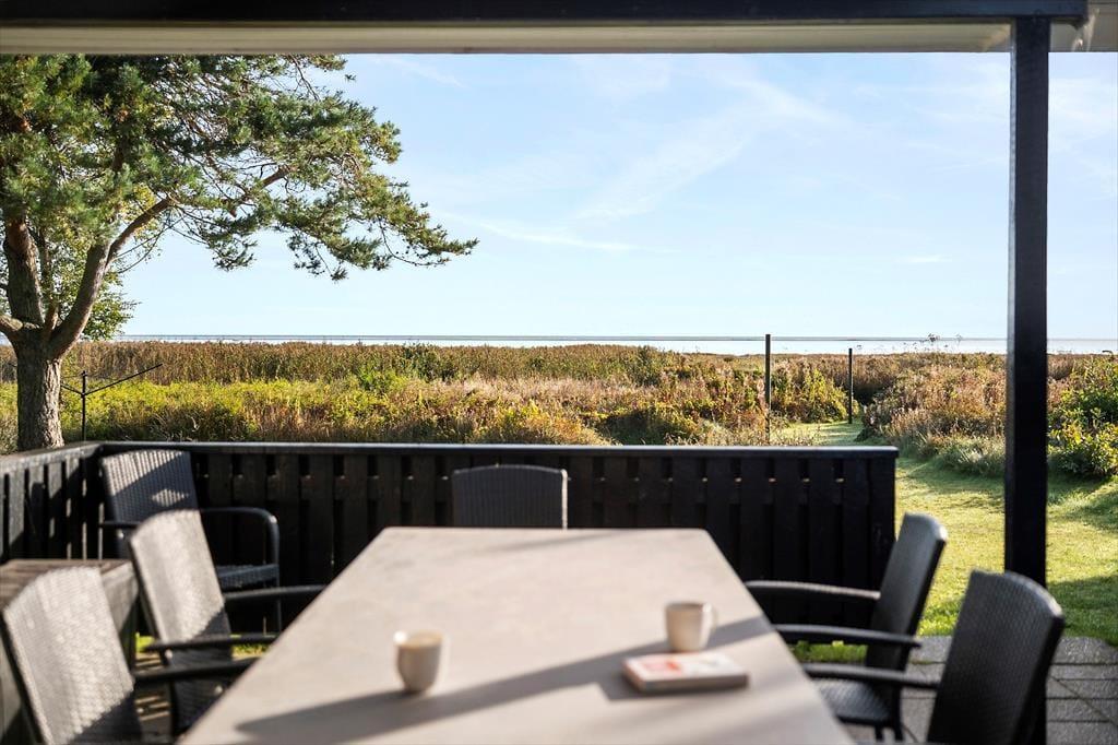 Der er terrasser på begge sider af sommerhuset, men mon ikke det er den sydøstvendte, der bliver favoritten på grund af den fantastiske udsigt til Kattegat. Netop denne terrasse er desuden delvist overdækket, så det er også et godt sted at sidde til langt ud på aftenen, med mindre I hygger jer med havespil og leg på havens græsplæne.