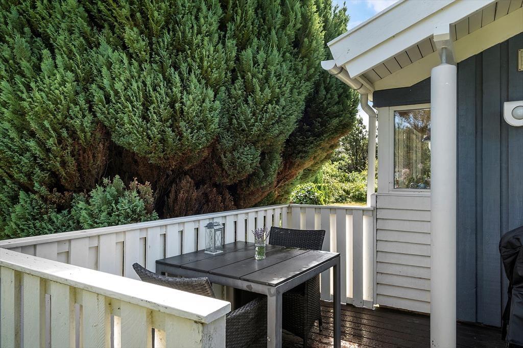 På den store, lukkede naturgrund er der plads til både leg og afslapning. De høje træer omkring grunden skaber en privat og fredfyldt oase, hvor du kan nyde solen og naturens lyde i fulde drag. Flere hyggelige kroge indbyder til afslapning – her kan du nyde din morgenkaffe, mens du lytter til fuglenes kvidren, eller slappe af med en god bog i eftermiddagssolen. Den terrasse er perfekt til udendørs måltider, og her kan du tænde grillen og tilberede lækre retter til hele familien. Når mørket falder på, kan du tænde lys på terrassen og nyde de rolige aftener under stjernehimlen.
