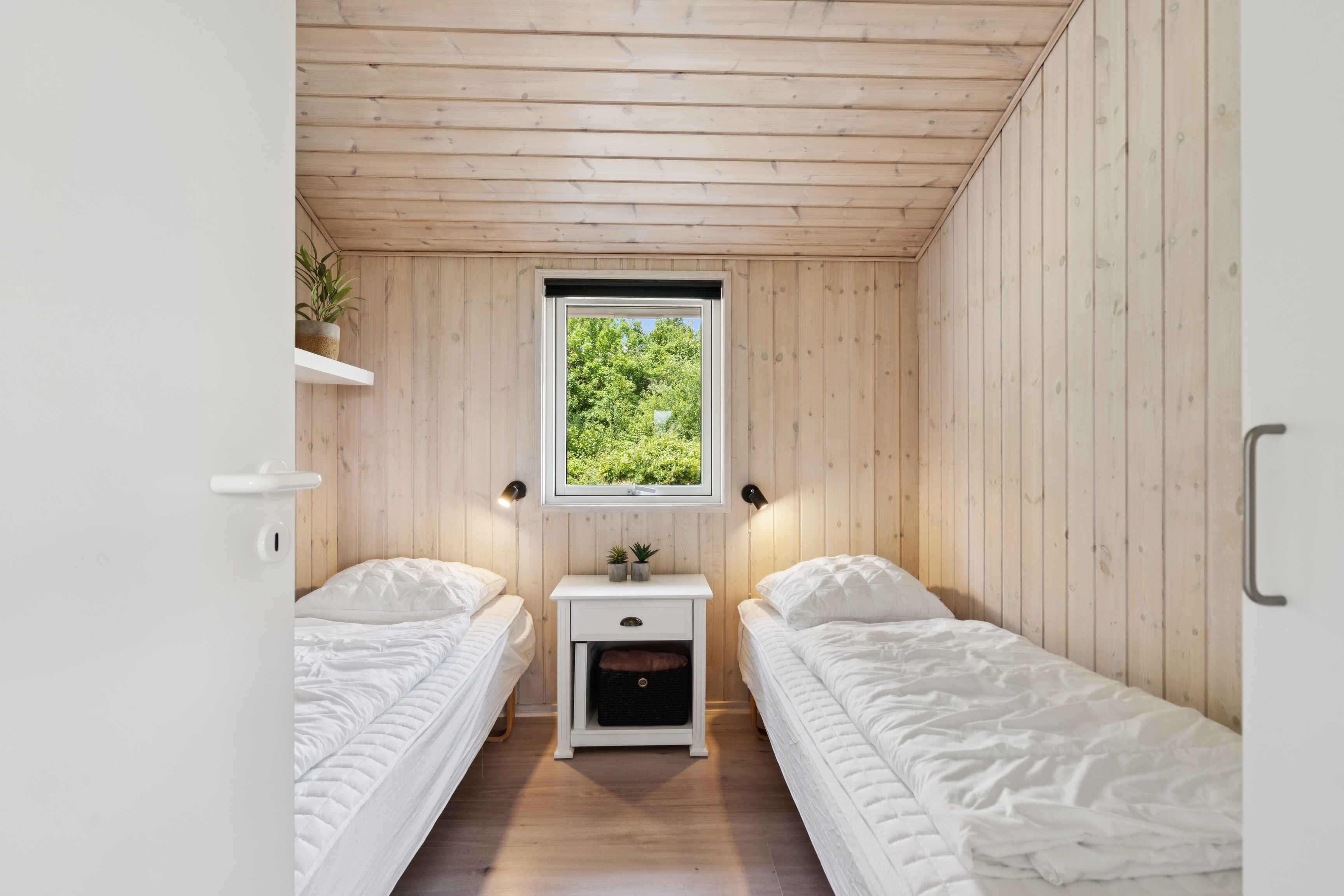 Ved Mommark finder I dette lille sommerhus med havudsigt såvel fra huset som fra grunden. Sommerhuset er lyst og hyggeligt indrettet med gulvvarme i hele huset. Der er veludstyret åbent køkken med opvaskemaskine, mikroovn og køle/fryseskab med 30 l. fryser kapacitet. Køkkenet ligger i åben forbindelse med stuen, hvor der er radio med Bluetooth højtaler, Smart Tv og 200 Mbit er til rådighed, så du kan streame dine egne tjenester. Fra køkken/alrum er der udgang til dejlig overdækket terrasse, hvor der er grill og havemøbler til rådighed. Sommerhuset rummer op til seks personer fordelt over to soveværelser med henholdsvis en dobbeltseng og to enkeltsenge og de sidste to sovepladser befinder sig på hemsen og er bedst egnet til større børn (6-12 år). Der er et pænt badeværelse med bruseniche og vaskemaskine. Huset er udstyret med en energibesparende varmepumpe, der sørger for et godt indeklima hele året. Til de mindste er der både højstol og weekendseng. Bemærk at opladning af el-bil er ikke tilladt. Der forefindes 8 ladestandere på Business College Syd i Mommark 1500 m fra huset. Sommerhuset ligger i et dejligt ferieområde ved Mommark. Den skønne natur indbyder til vandre- og cykelture. En lille hyggelig skovsti fører ned til stranden, hvor der er en badebro. Sommerhuset er beliggende på et fællesareal og ned mod stranden findes der yderligere et stort friareal med græs, fodboldbane, bålplads og en lille legeplads. Obs, udlejes ikke til erhversmæssigt brug.