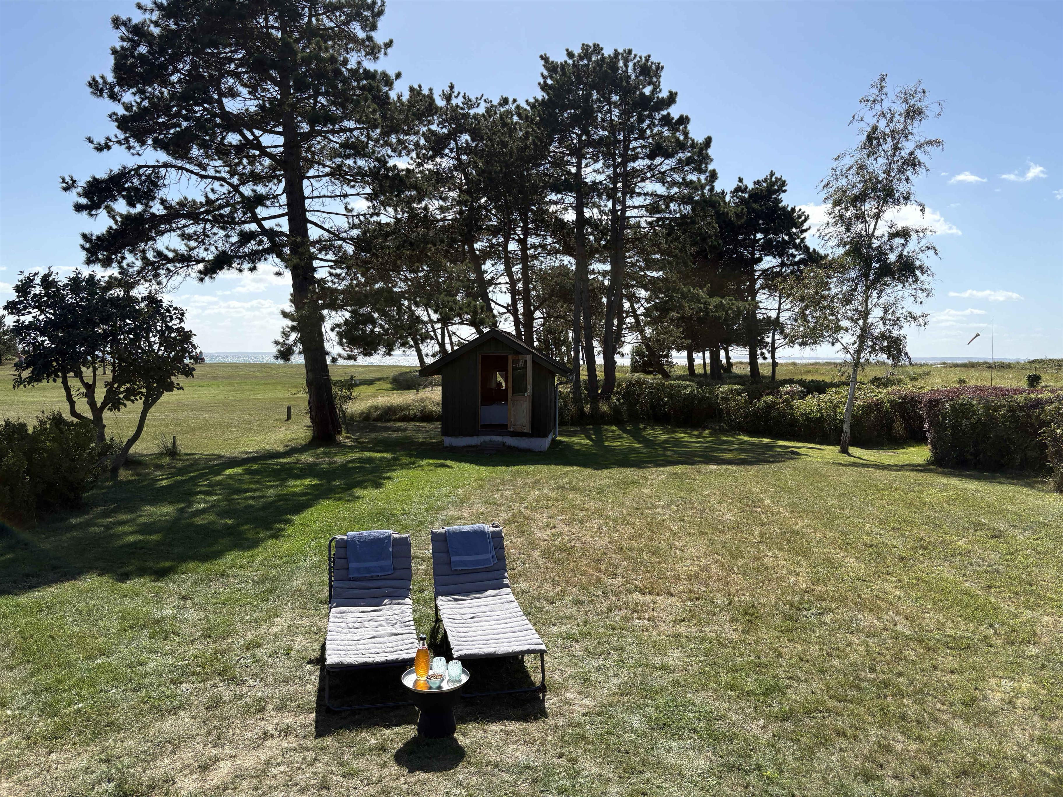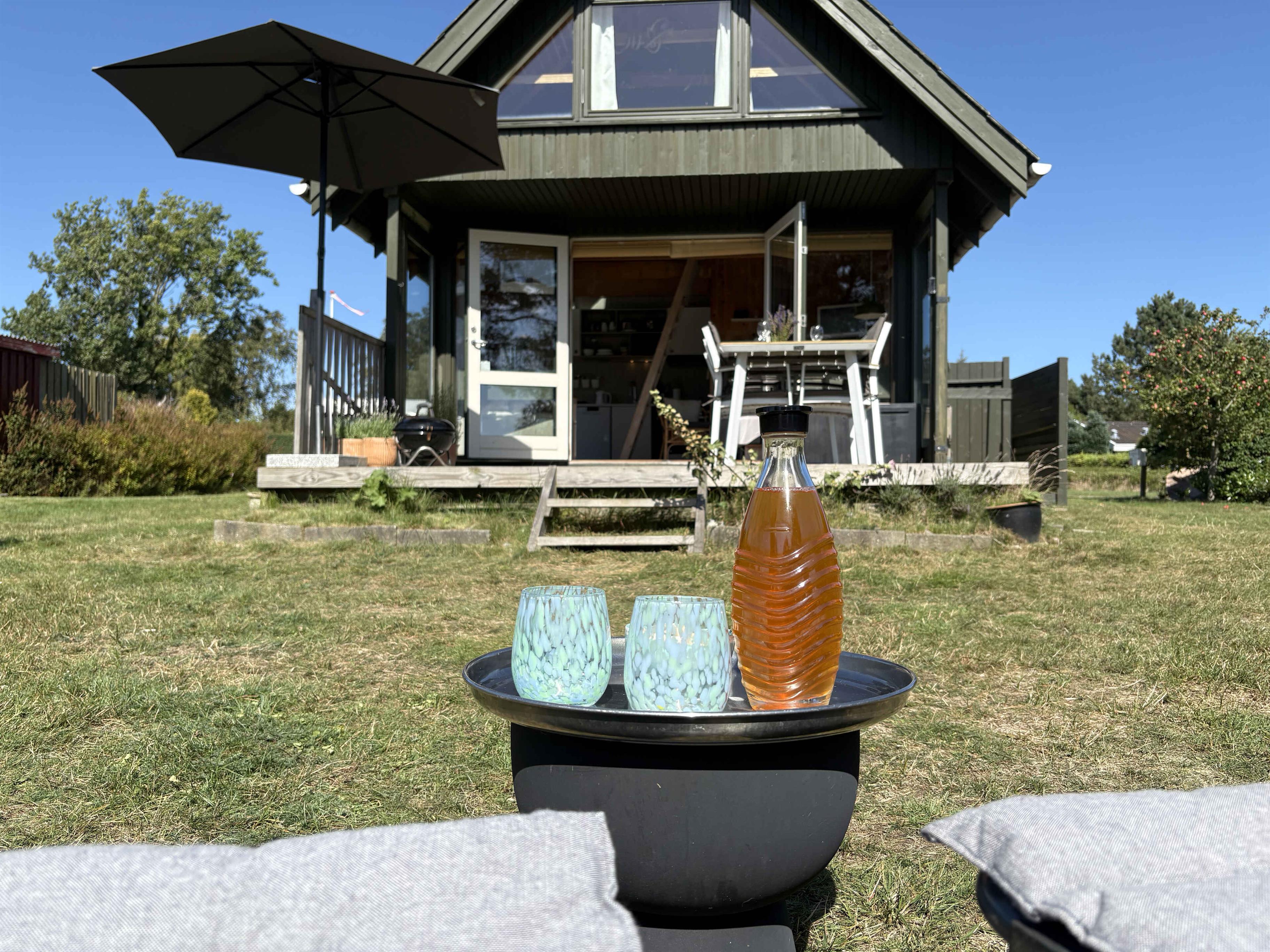 Hyggelig feriebolig, lille, men veludstyret. Panoramaudsigt til vandet, 2 sovepladser i stueplan, 2 sovepladser på hemsen, 2 sovepladser i gæstehytte, stor terrasse, stor grund med plads til leg, førsteklasses beliggenhed i 1. række