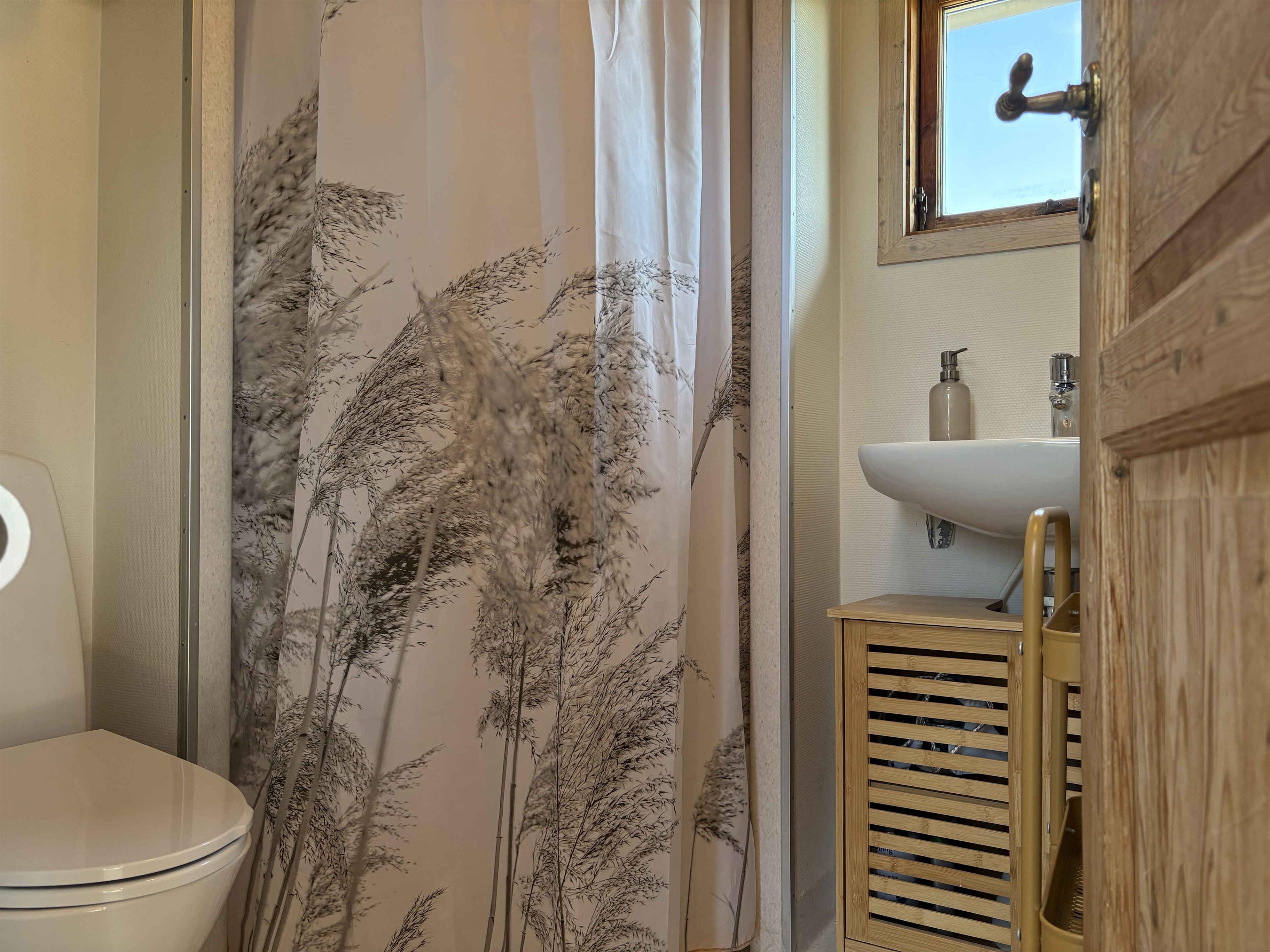 Denne lille hytte på 18 m² rummer alt, hvad der skal til for en ferie tæt på kysten. Med sin kompakte indretning får man en enkel, men funktionel base, der er let at bruge som udgangspunkt for afslapning og oplevelser. Indenfor finder du plads til fire personer. To sovepladser er placeret i stueplan, mens hemsen rummer yderligere to. Det gør hytten velegnet både til parret eller den lille familie, som ønsker at bo tæt og hyggeligt, men stadig med god komfort. Fra stuen åbner udsigten sig direkte mod vandet. De store vinduespartier giver et panorama, der gør, at man hele tiden har naturen som baggrund – uanset om dagen bruges indenfor eller på terrassen. Afstanden til kysten er blot 100 meter. Grunden er rummelig og giver plads til leg, boldspil og ophold i det fri. Her er let adgang til både sol og skygge, og uderummet kan nemt blive familiens naturlige samlingspunkt. Området omkring hytten er særligt attraktivt for feriegæster. Kysten på Sydals indbyder til badeture, kajak eller lange gåture langs stranden. Vandet er ofte roligt og velegnet til børn. Der er også gode muligheder for cykelture gennem landskabet, hvor marker, skove og små landsbyer skaber variation. Naturen er ikke det eneste trækplaster. I nærheden findes hyggelige havnemiljøer, lokale spisesteder og små butikker. Fra sommerhuset kan man hurtigt tage på udflugter til historiske seværdigheder, eller man kan vælge en dag i ro, blot med udsigten som underholdning. Kombinationen af den enkle hytte, den store grund og nærheden til vandet gør dette sted til en feriebolig, hvor både ro og oplevelser er inden for rækkevidde.