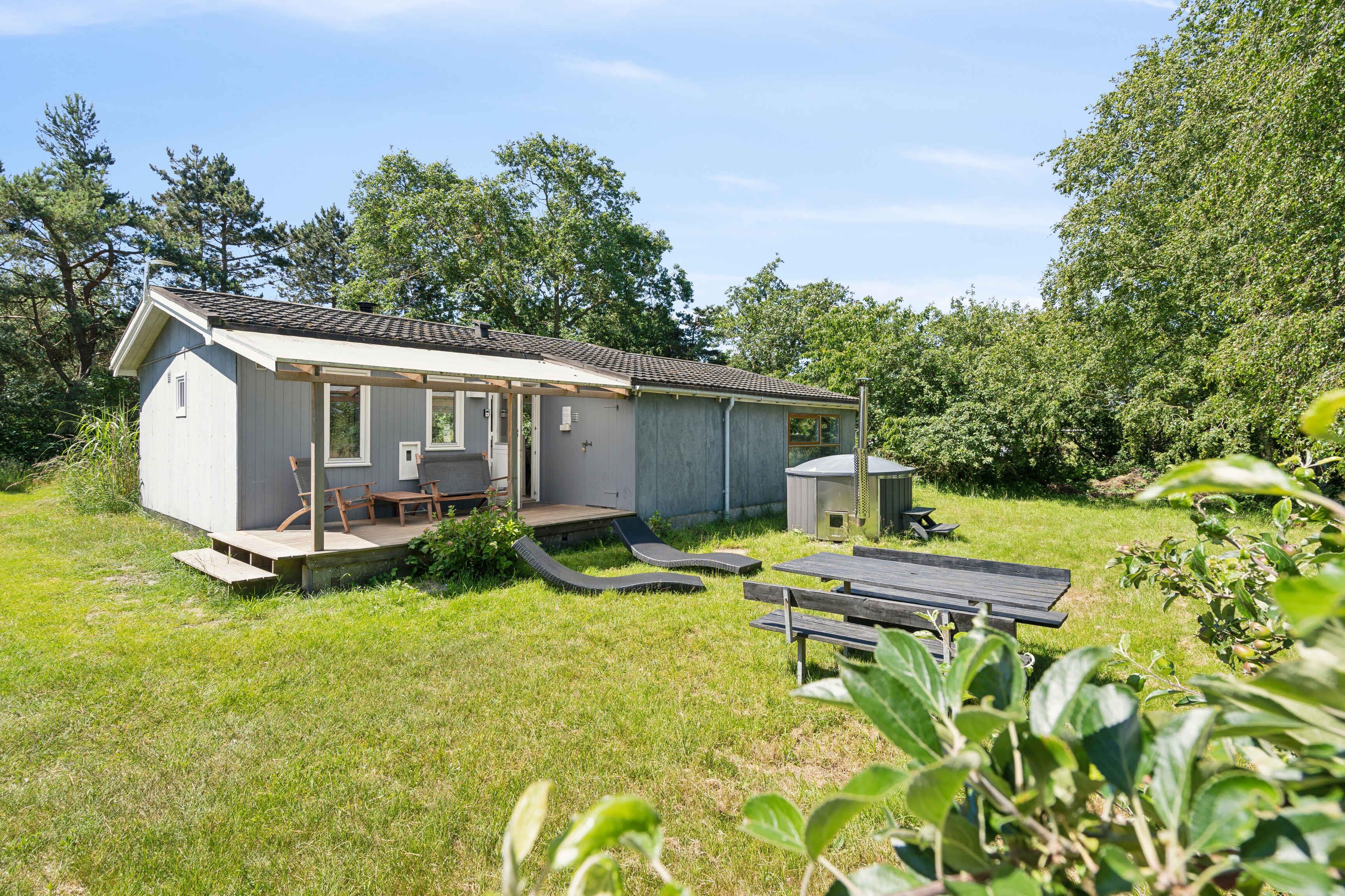 Hyggeligt feriehus med strand og vildmarksbad