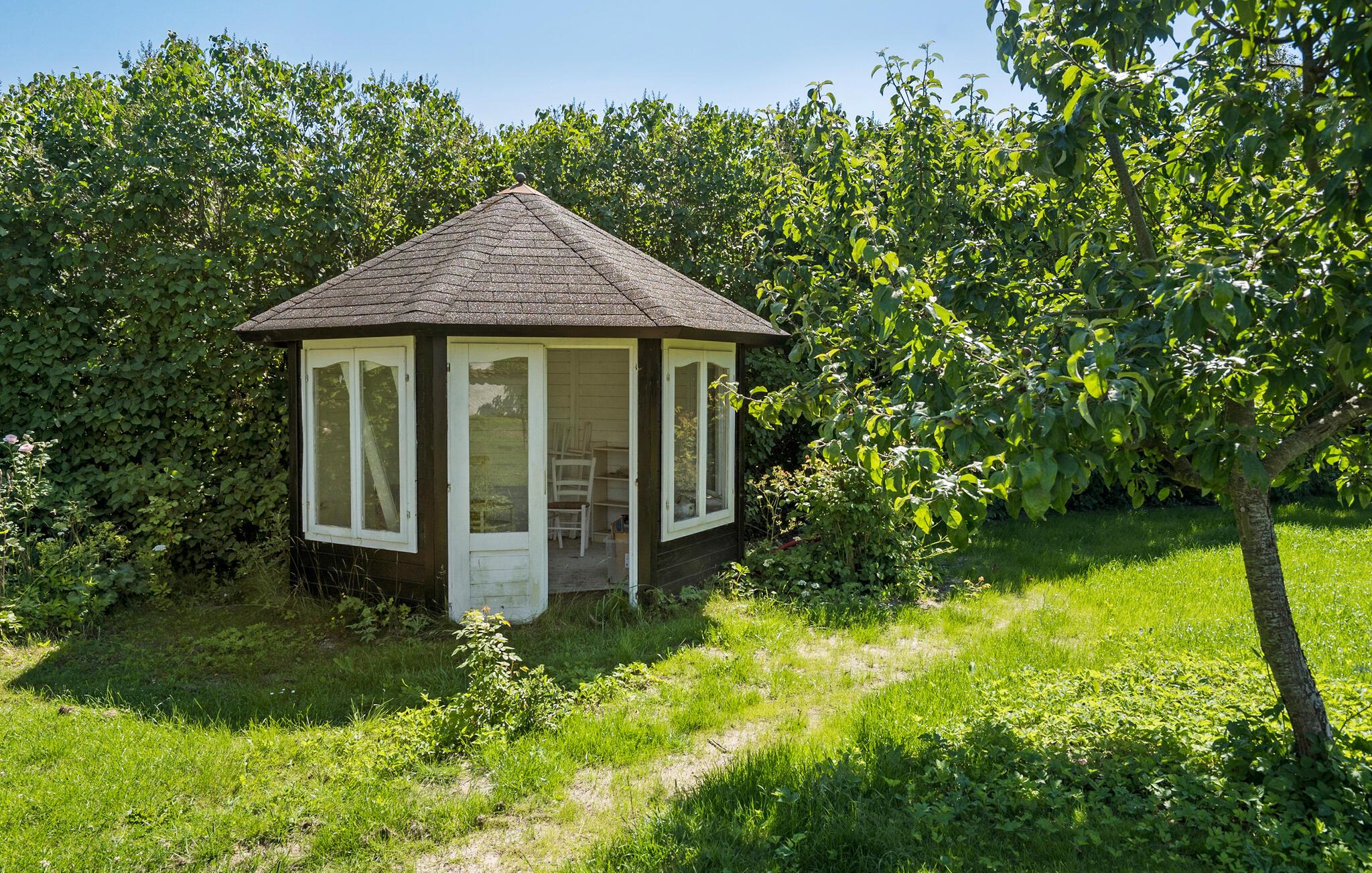På de varme dage kan I nyde solen lige fra morgenstunden i den store have eller på terrassen. Der er mange fine kroge og hjørner, hvor børnene kan gå på opdagelse, og måske I skal forkæle jer selv med en lækker aftentur i vildmarksbadet?