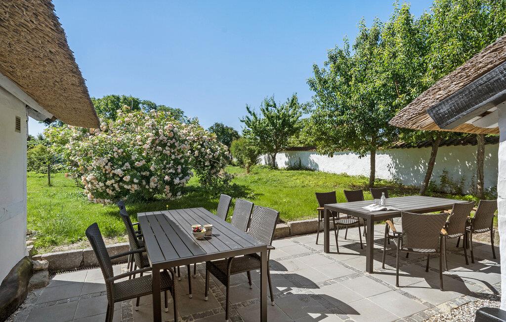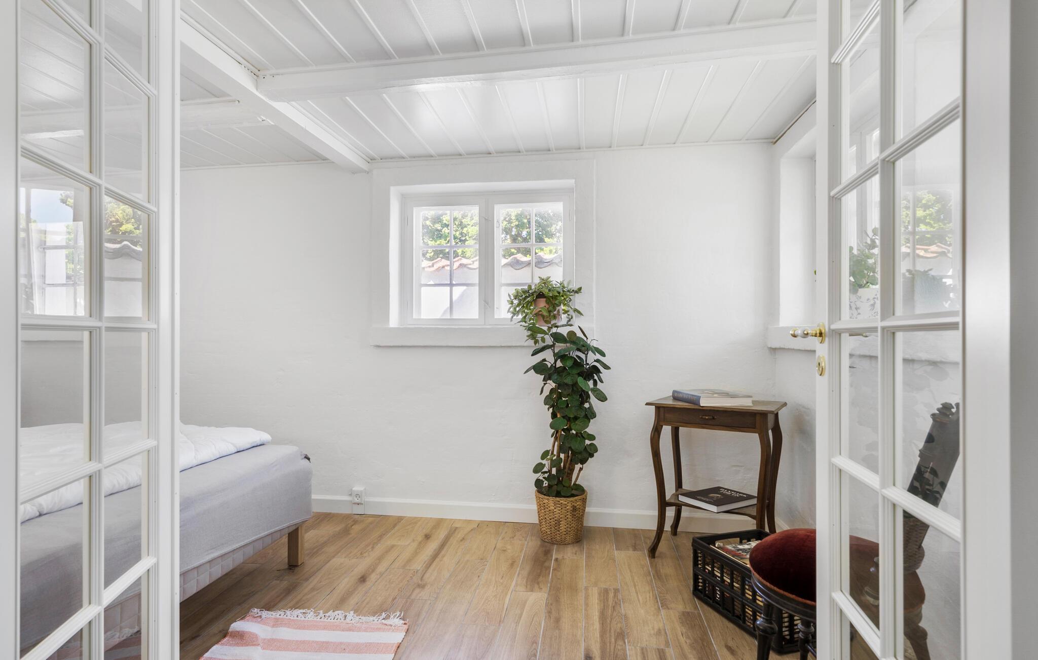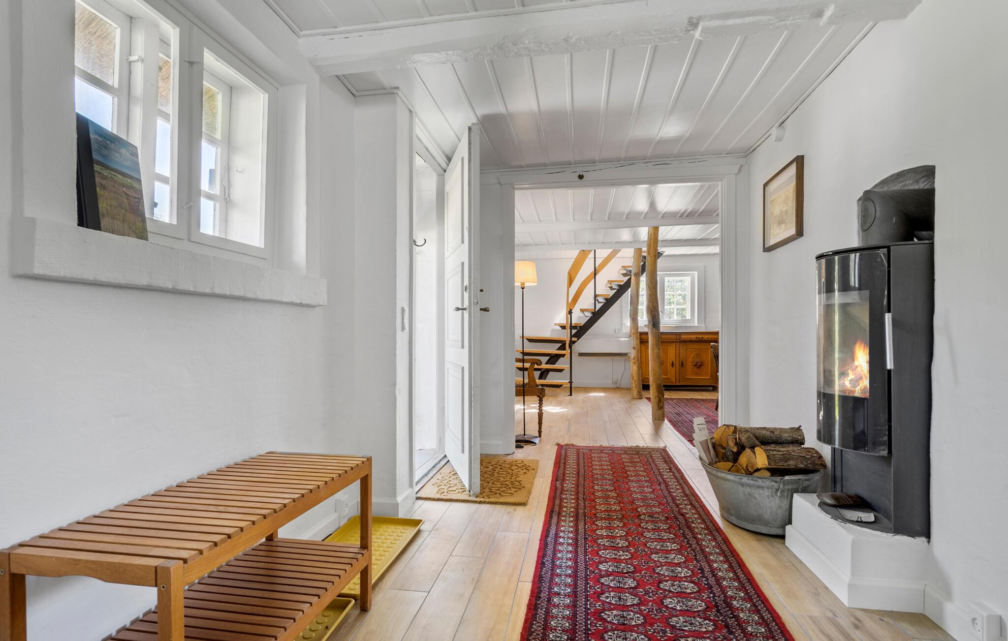 Hvis I er på udkig efter en særdeles charmerende bolig til årets familieferie, er dette dejlige stråtagshus i Alslev det helt rette valg for jer. Huset ligger på en stor, grøn grund tæt ved den lille landsbys kirke, og indvendigt emmer det af hygge og komfort over flere etager. De rustikke indretningsdetaljer suppleres ganske fremragende af de moderne faciliteter, som tilsammen skaber en boligoplevelse, der er både afslappende og behagelig. Køkkenet er særdeles veludstyret, så lad endelig familiens kokke kræse om livretterne, mens andre dækker op til en hyggelig middag ved det flotte spisebord af træ. Skulle vejret vise lidt tænder, er bare at fyre op i brændeovnen, der giver det helt rigtige lydtapet til aftenhyggen i den dejlige stue under skråvæggene.