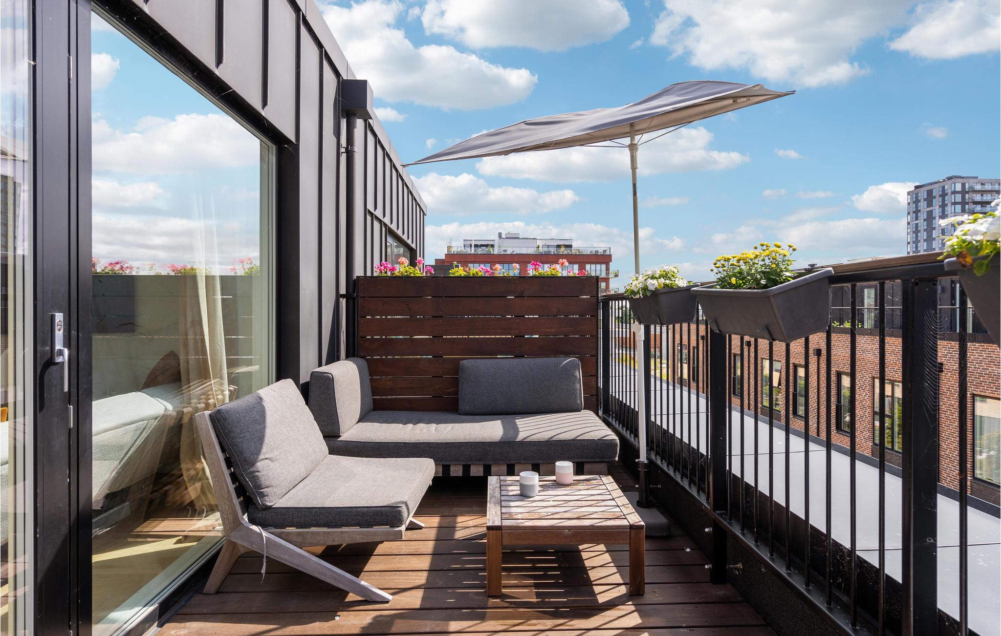 Moderne rækkehus tæt på Amager Strandpark med terrasse og høj komfort i København.