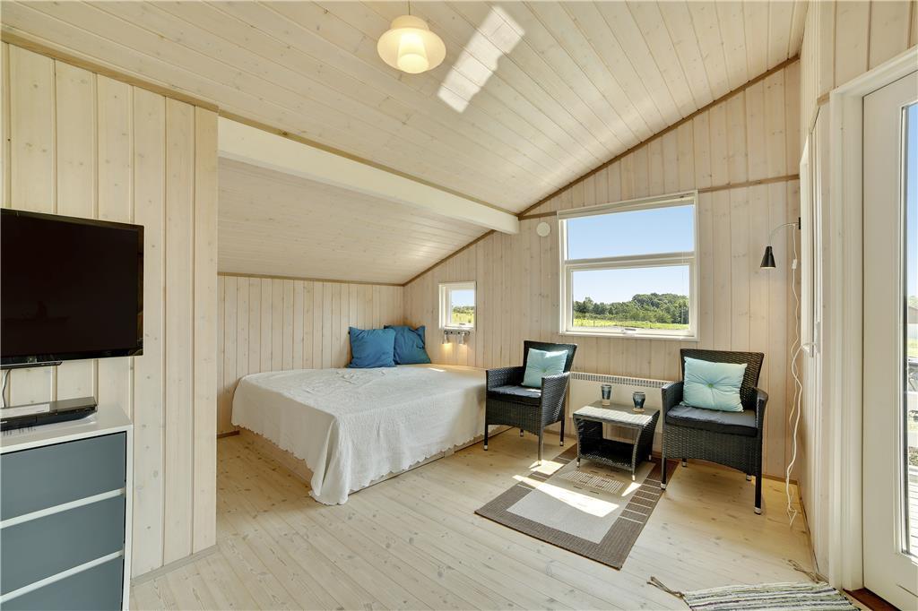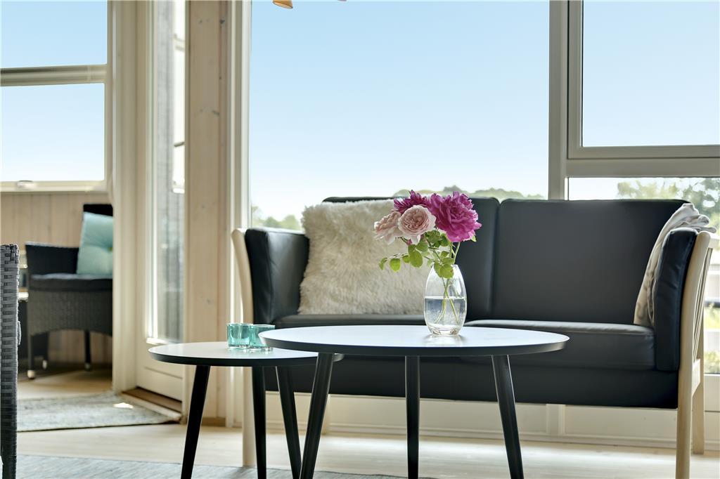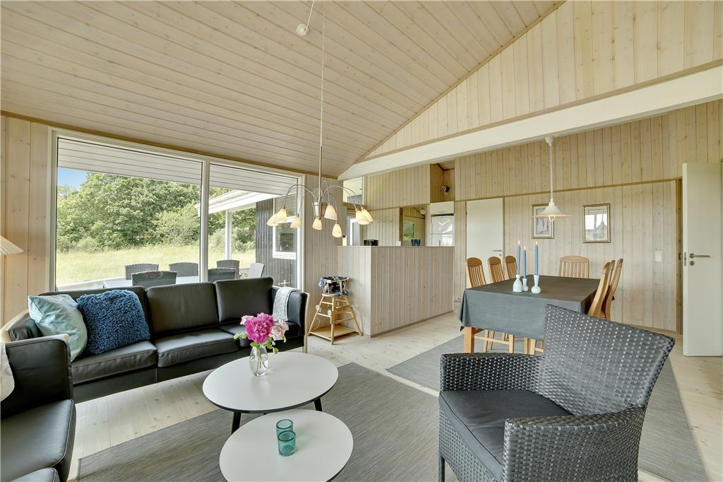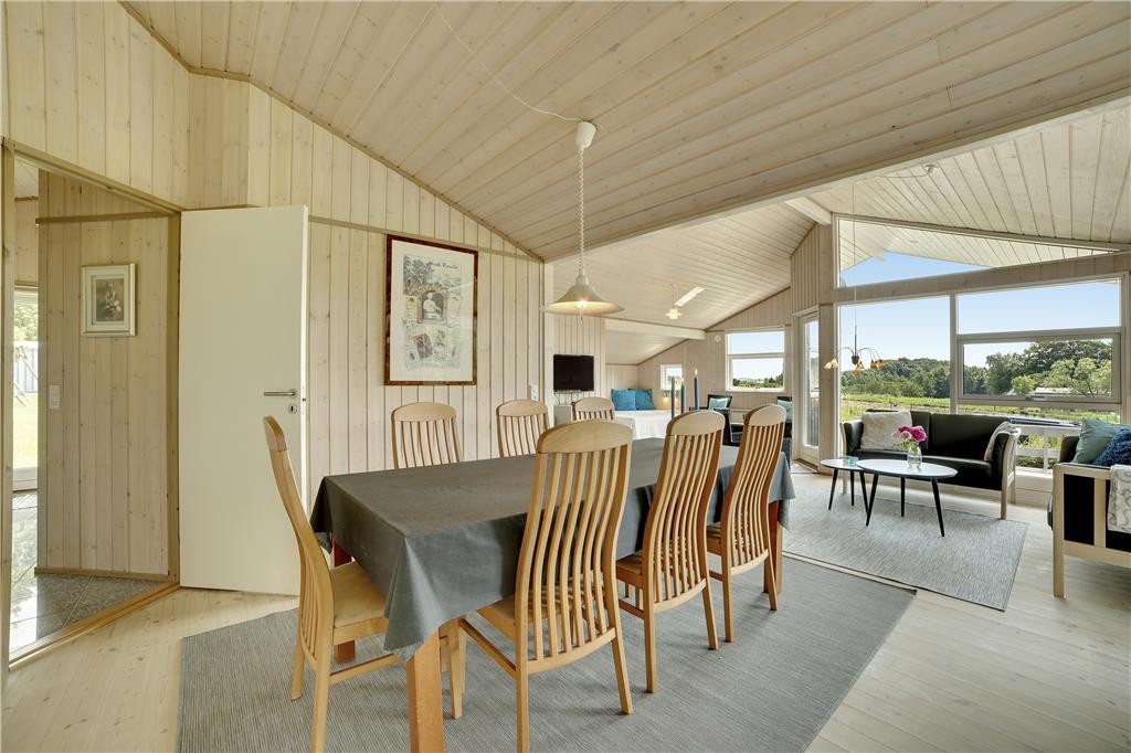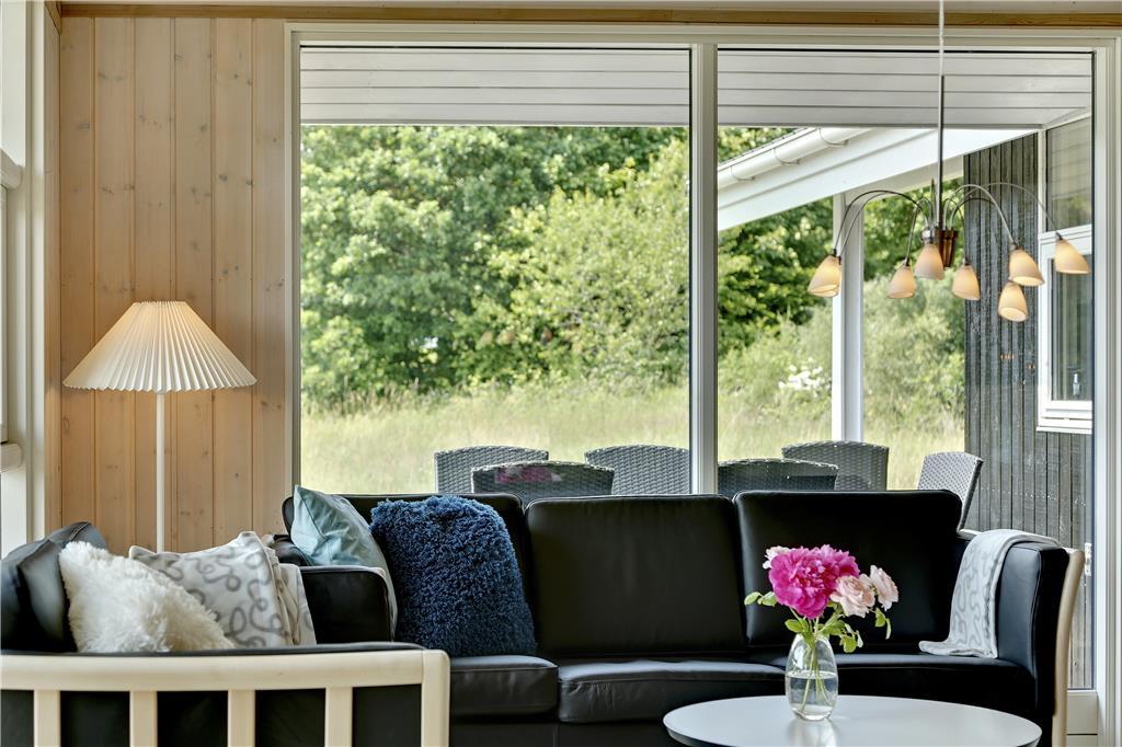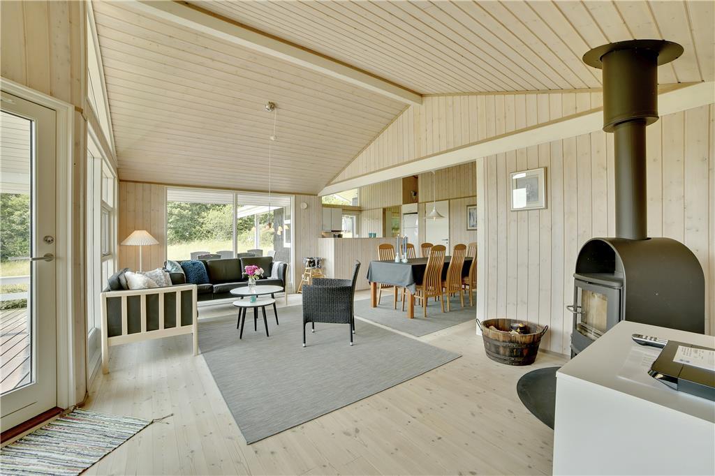 Rummeligt og velholdt sommerhus med god plads i opholdsstuen til hele familien. Stuen er lys og indbydende med udsigt over marker og den skønne natur, som omgiver området. Her er desuden en dejlig brændeovn samt TV med både danske, tyske, svenske og norske kanaler, hvis sommervejret ikke viser sig fra sin bedste side.