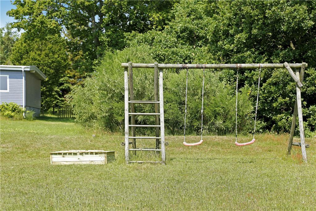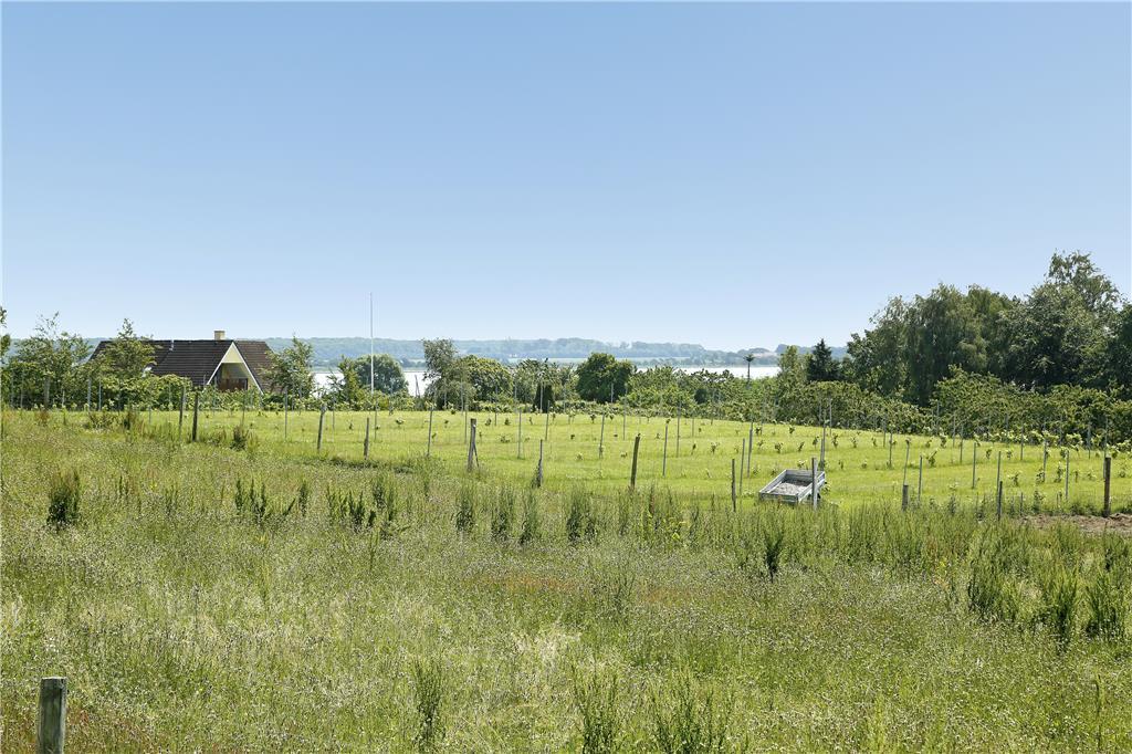 Skøn terrasse med udsigt over marker og kig til Lerdrup Vig. Stor åben grund, hvor der er god plads til spil og leg. Til de mindste er der en sandkasse og et gyngestativ. På terrassen er der havemøbler og grill.
